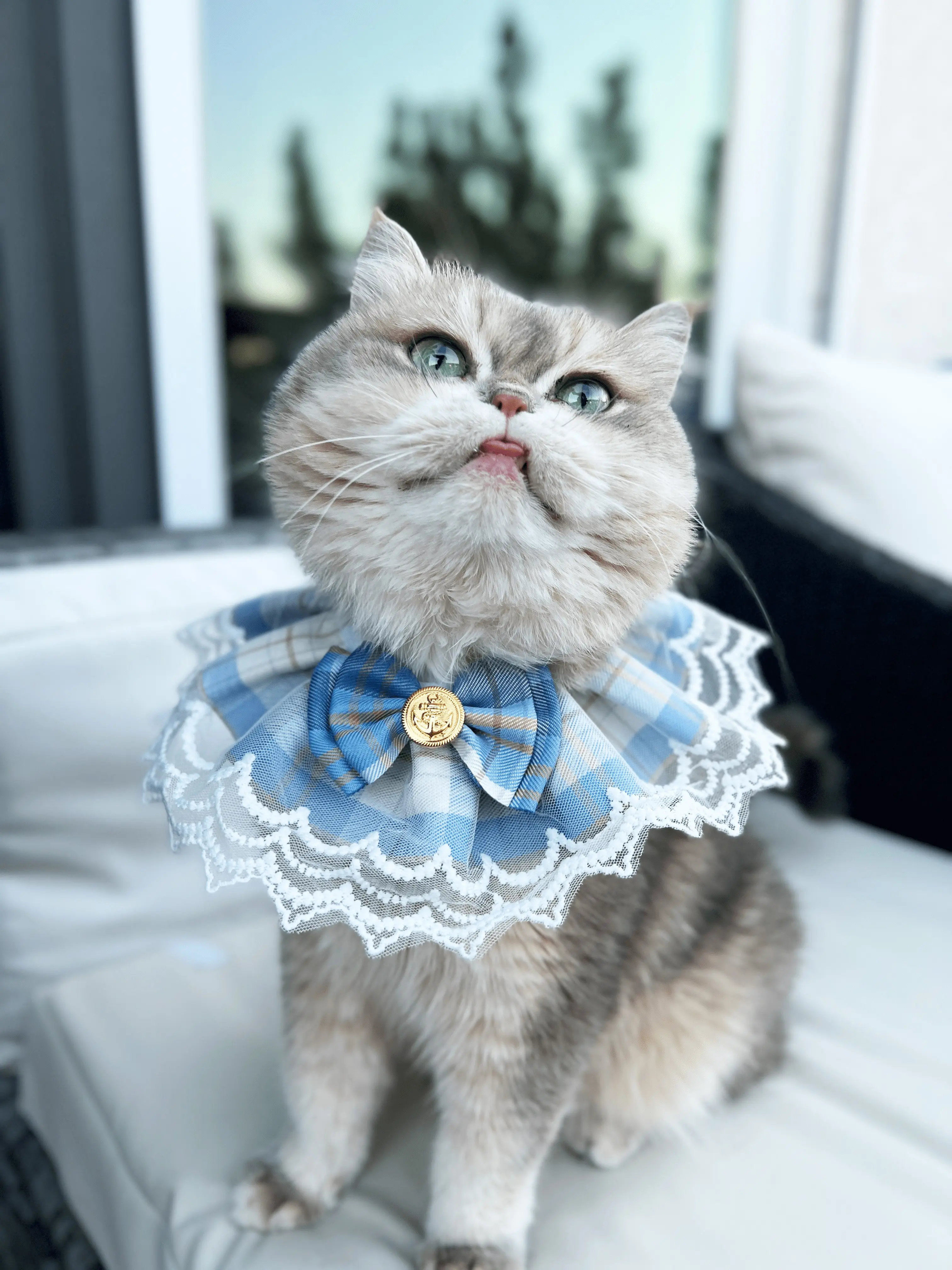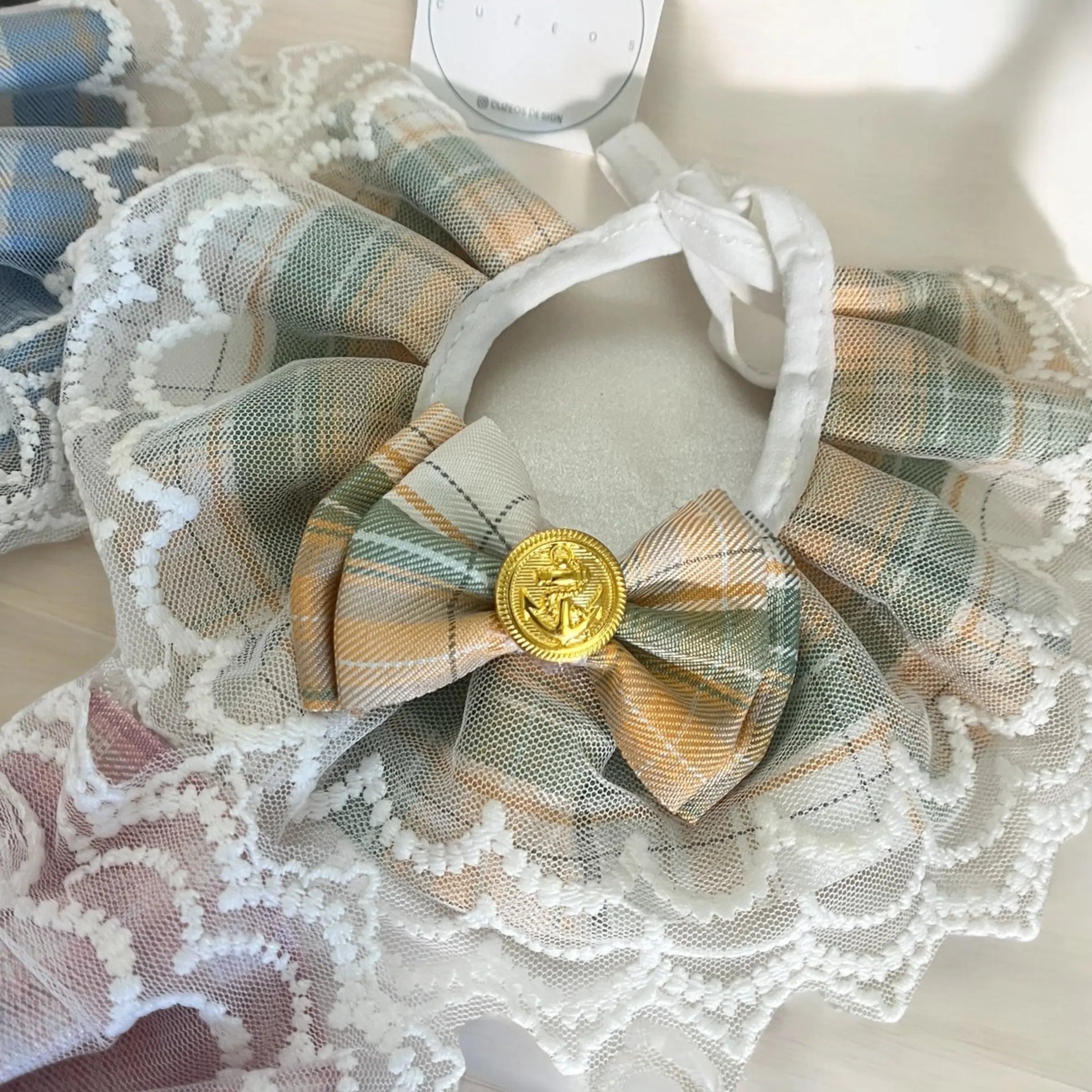 Sky Blue: Featuring a serene blue plaid with elegant lace, this collar brings a calming and classic look to your pet’s ensemble.