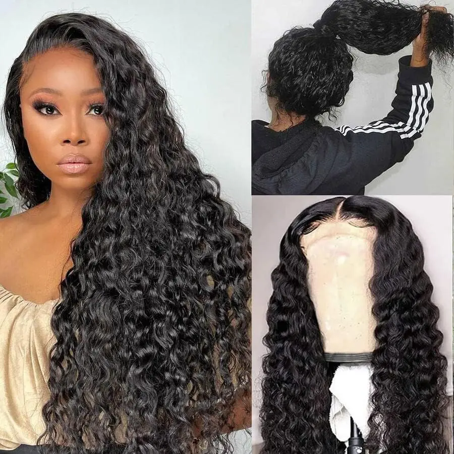 5. Bling Hair Clearance Sale Deep Wave Brazilian HD Transparent Lace Frontal Wig for Women 13x4 13x6 Lace Human Hair Wig Curly Pre Plucked 30 32 Inches 180% Natural Hairline