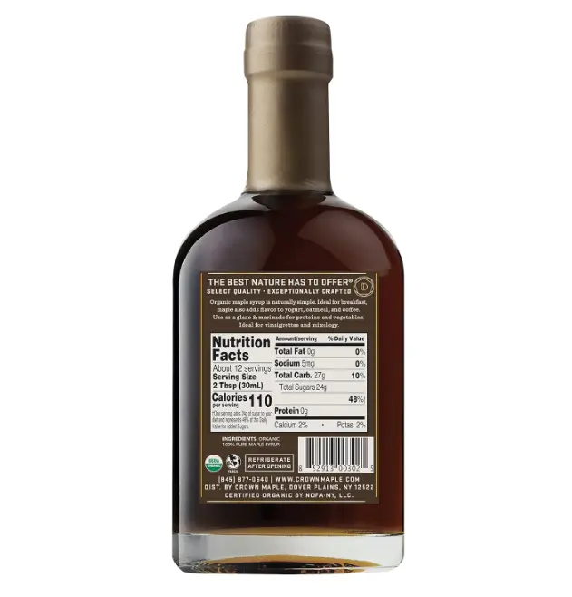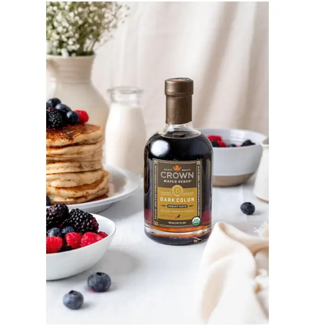 This Crown Maple Dark Color, Robust Taste Organic Maple Syrup is a rich and flavorful addition to your pantry. Made from 100% pure maple sap, it offers a deep flavor profile perfect for enhancing cocktails, marinades, and pancakes.