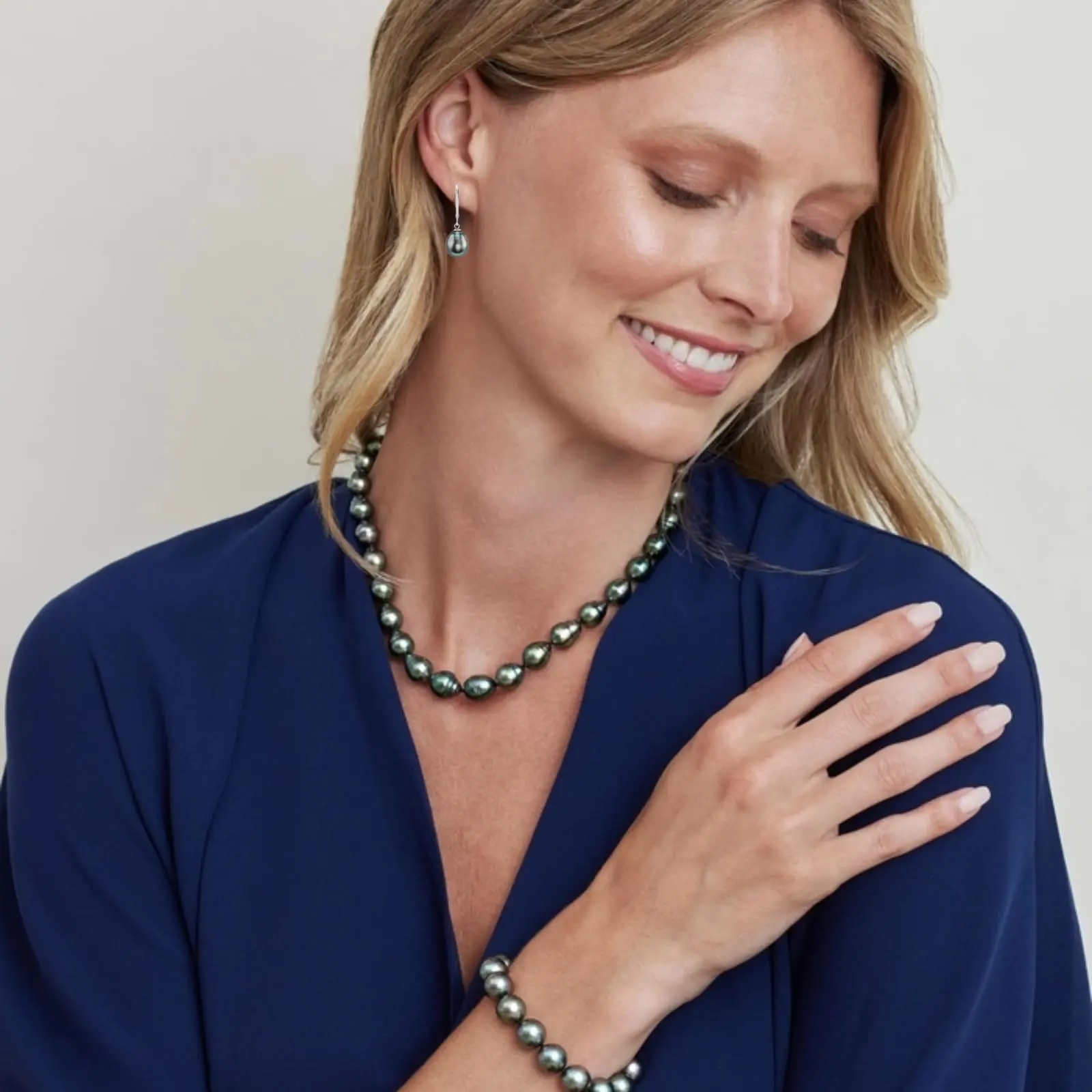 5. THE PEARL SOURCE Tahitian Real Pearl Earrings for Women - 14k Gold Leverback Earrings | Hypoallergenic Earrings with Genuine Drop Shape Tahitian Cultured Pearls, 8-9mm