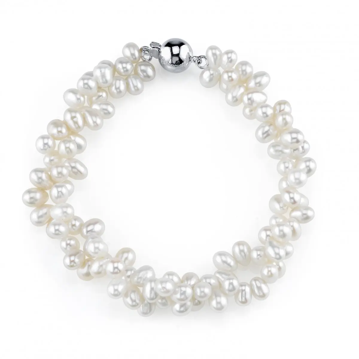 This chic pearl bracelet is a must-have accessory for any fashion-forward individual. The bracelet features two braided strands of lustrous 4mm rice-shaped white freshwater pearls, which add a touch of elegance and sophistication to the design. The pearls are affixed with a sterling silver clasp, ensuring that the bracelet stays securely in place.