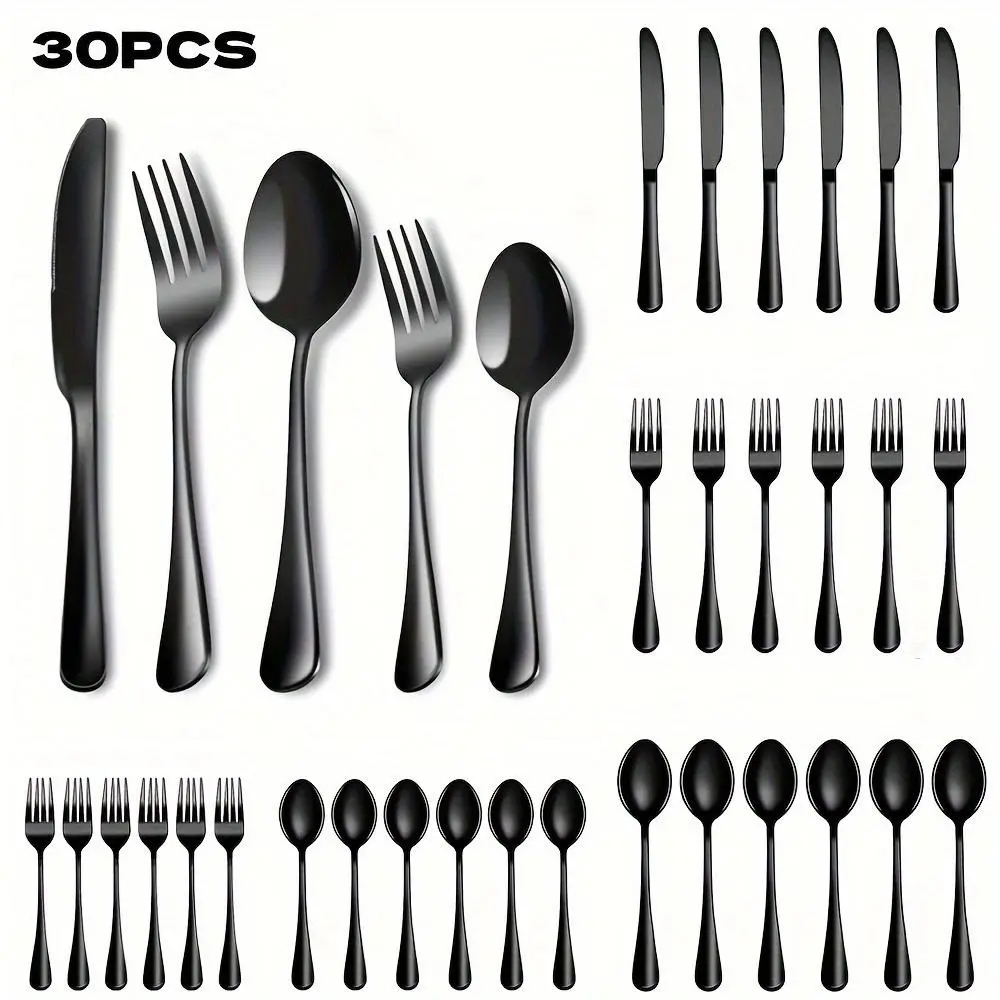 Stainless Steel Cutlery Set, 30pcs/set Including Knives & Forks & Spoons, Tableware Set for Wedding, Celebration, Party, Dinnerware Service Set