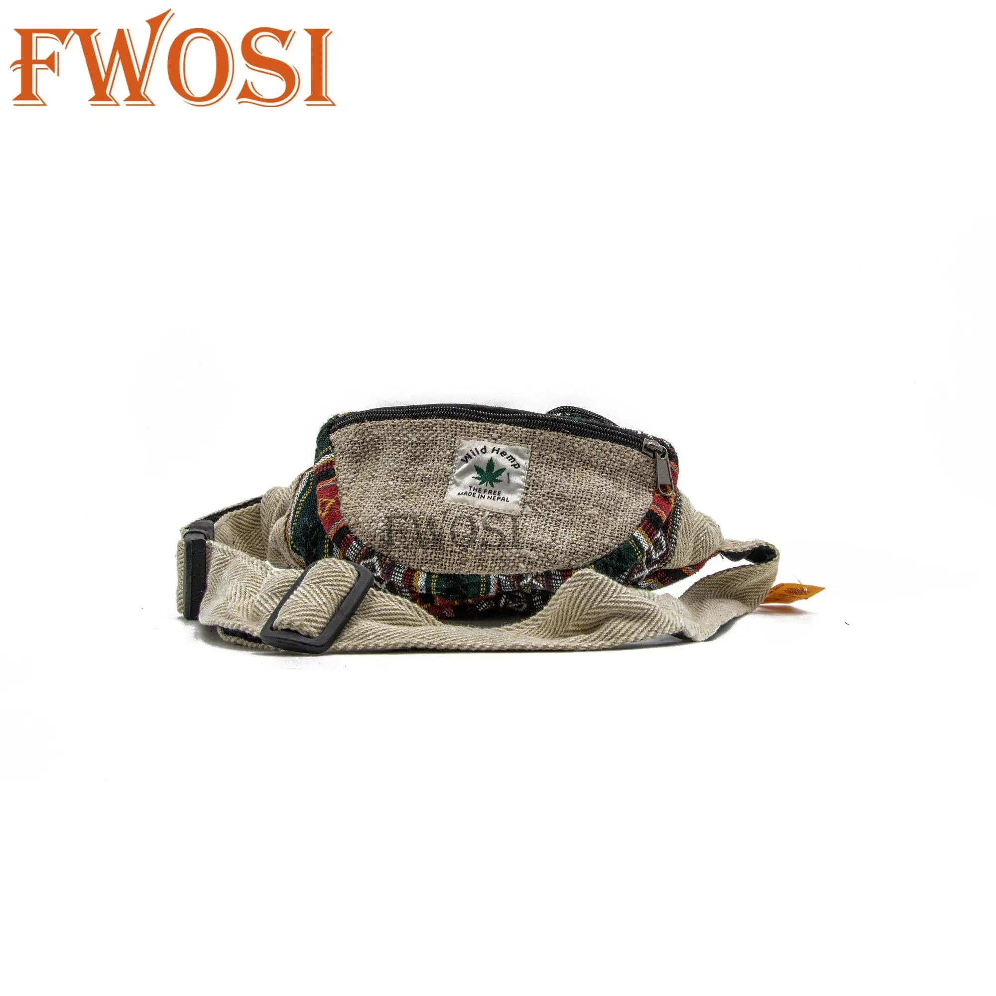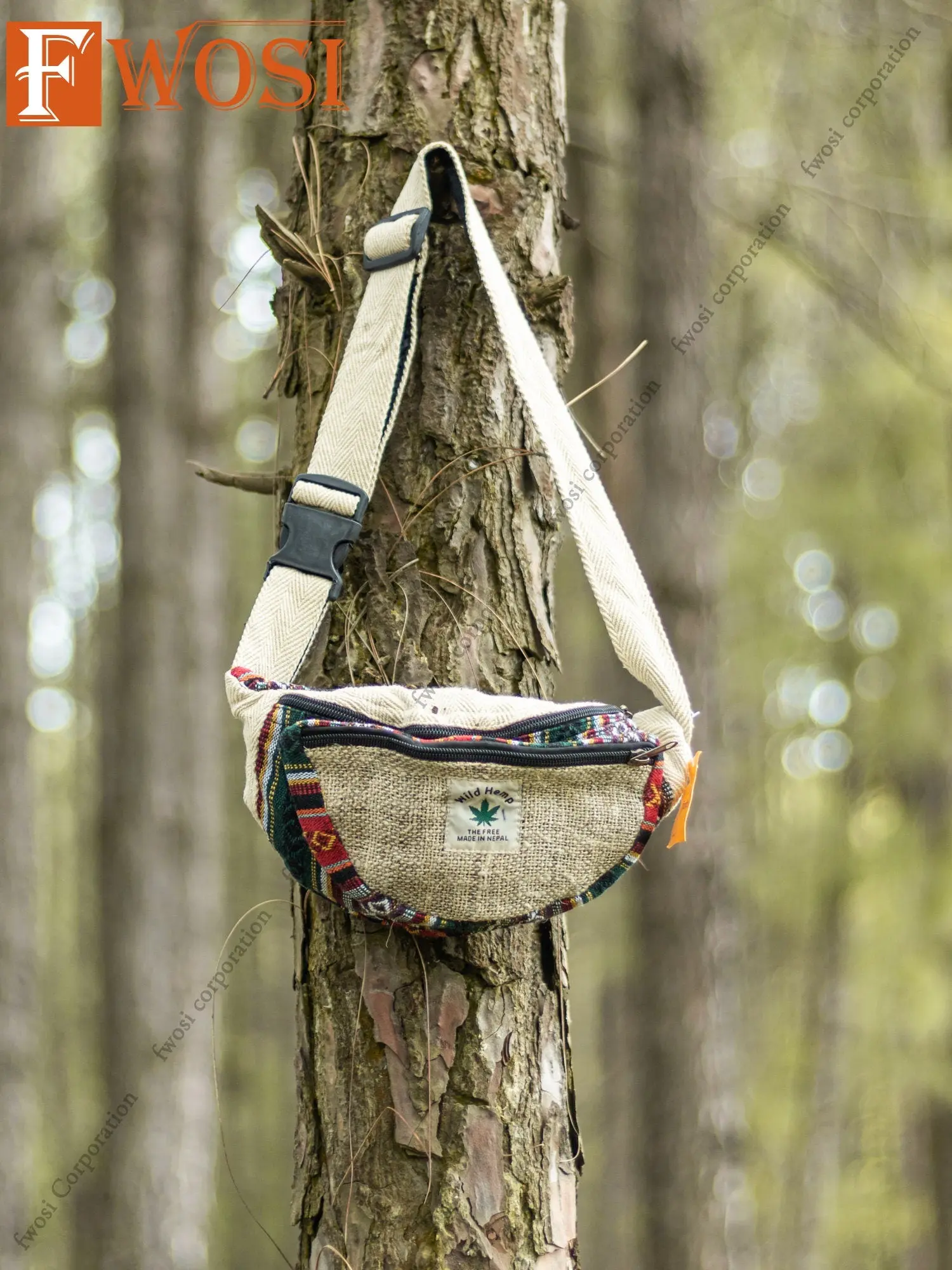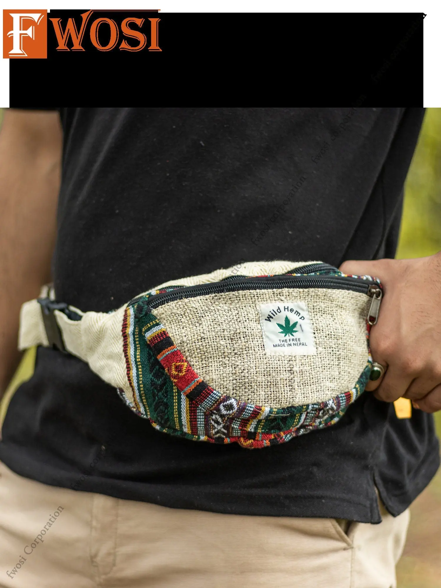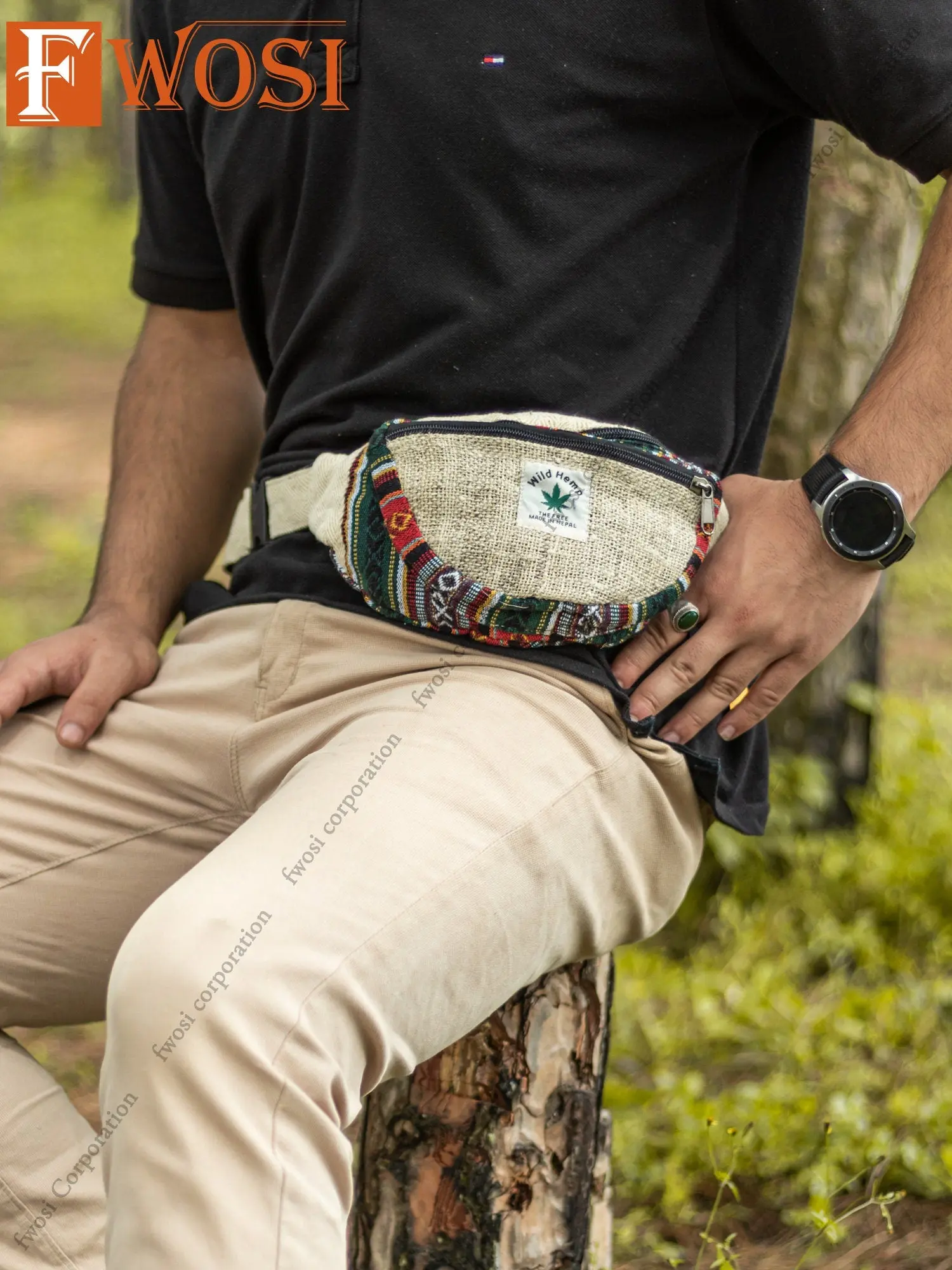 Fwosi Hemp Hippie Fanny Pack Travel Bag with Adjustable Strap and Versatile Design