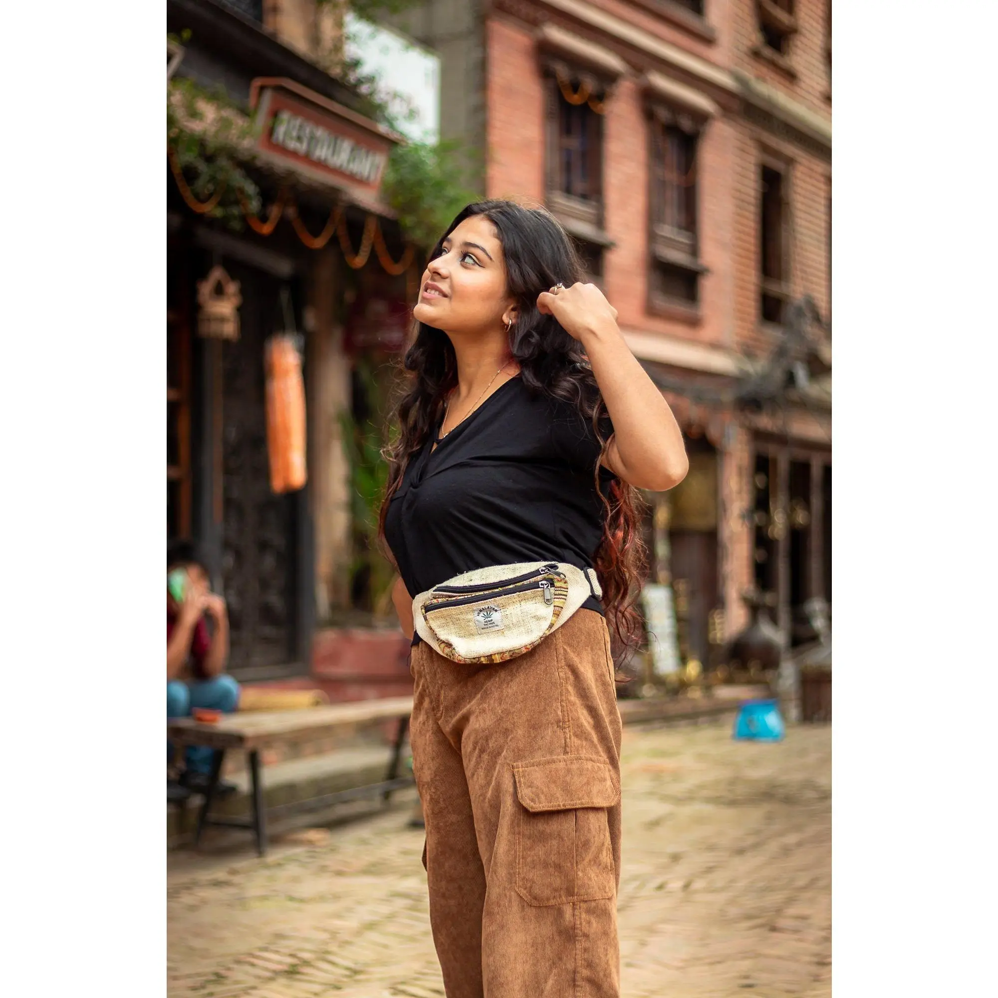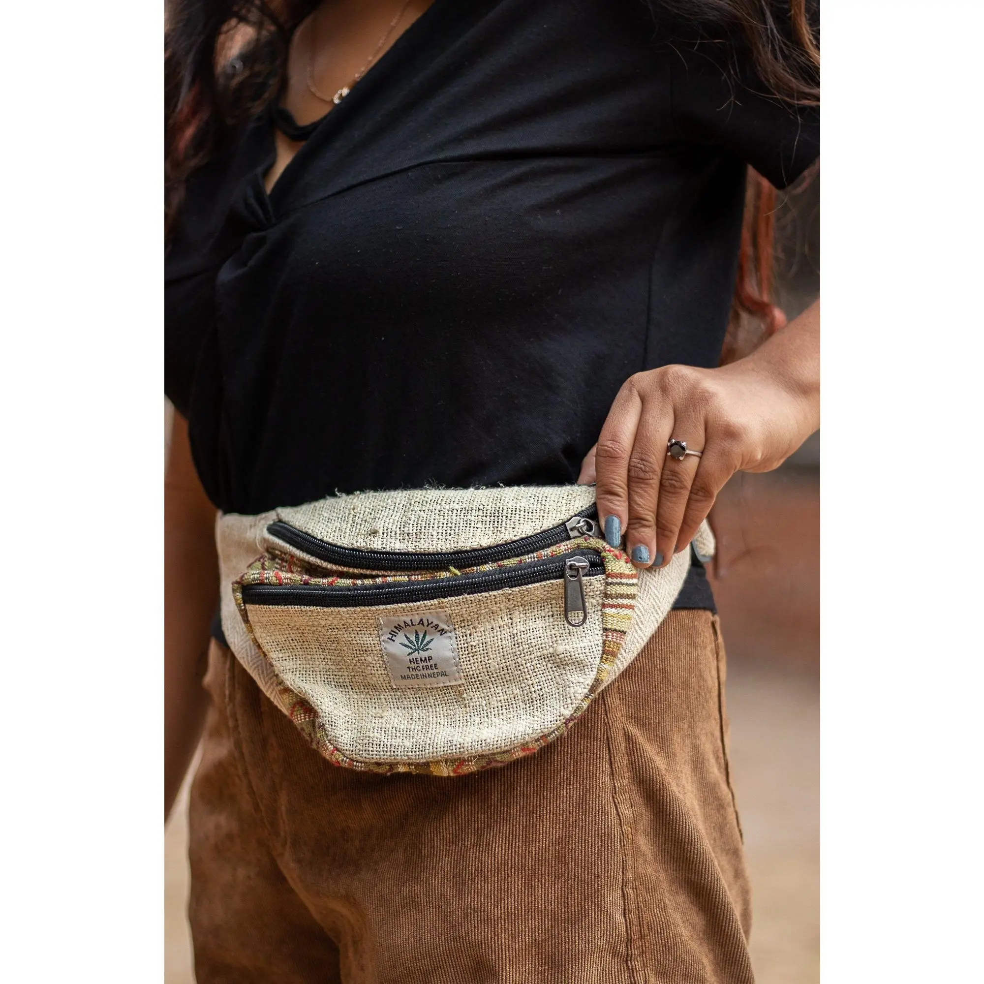 Fwosi Hemp Hippie Fanny Pack Travel Bag with Adjustable Strap and Versatile Design