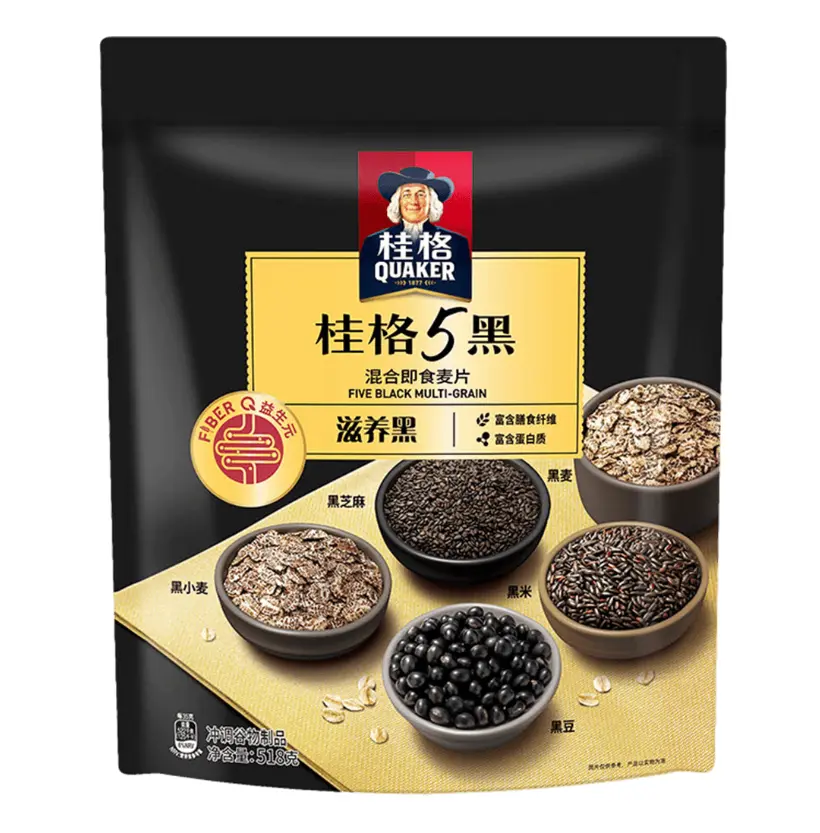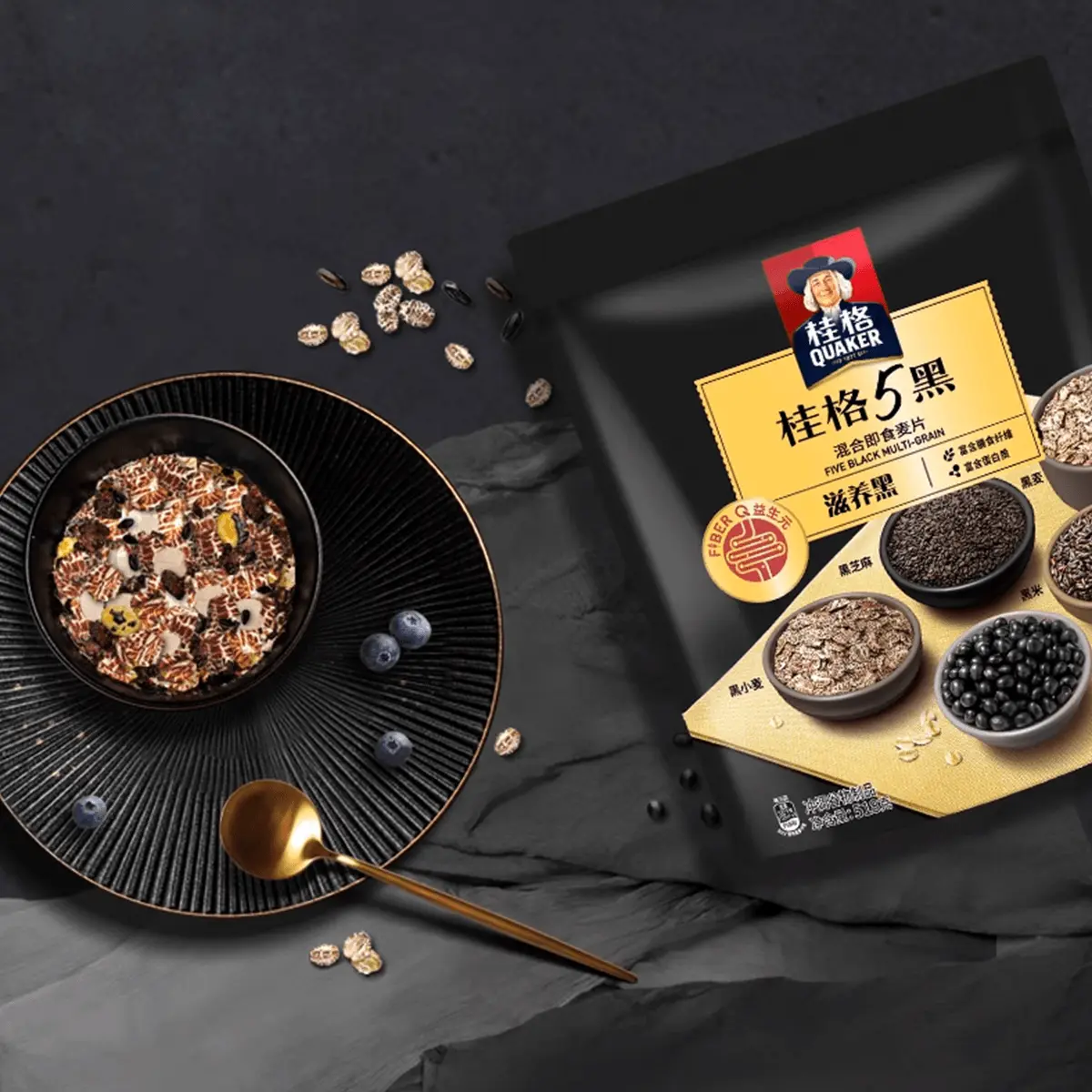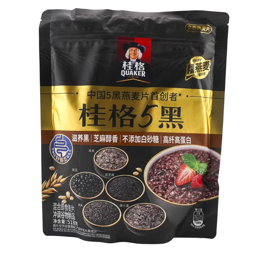 ·Five nutritious black ingredients: black sesame, black rice, black wheat, black beans, and black wheat.