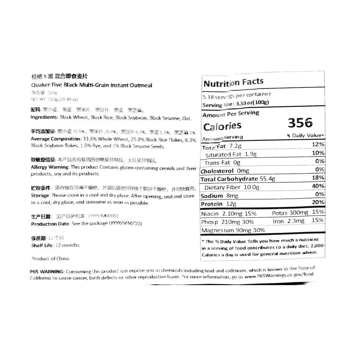·Provides eight types of nutrients: protein, dietary fiber, magnesium, iron, potassium, phosphorus, niacin, and carbohydrates.