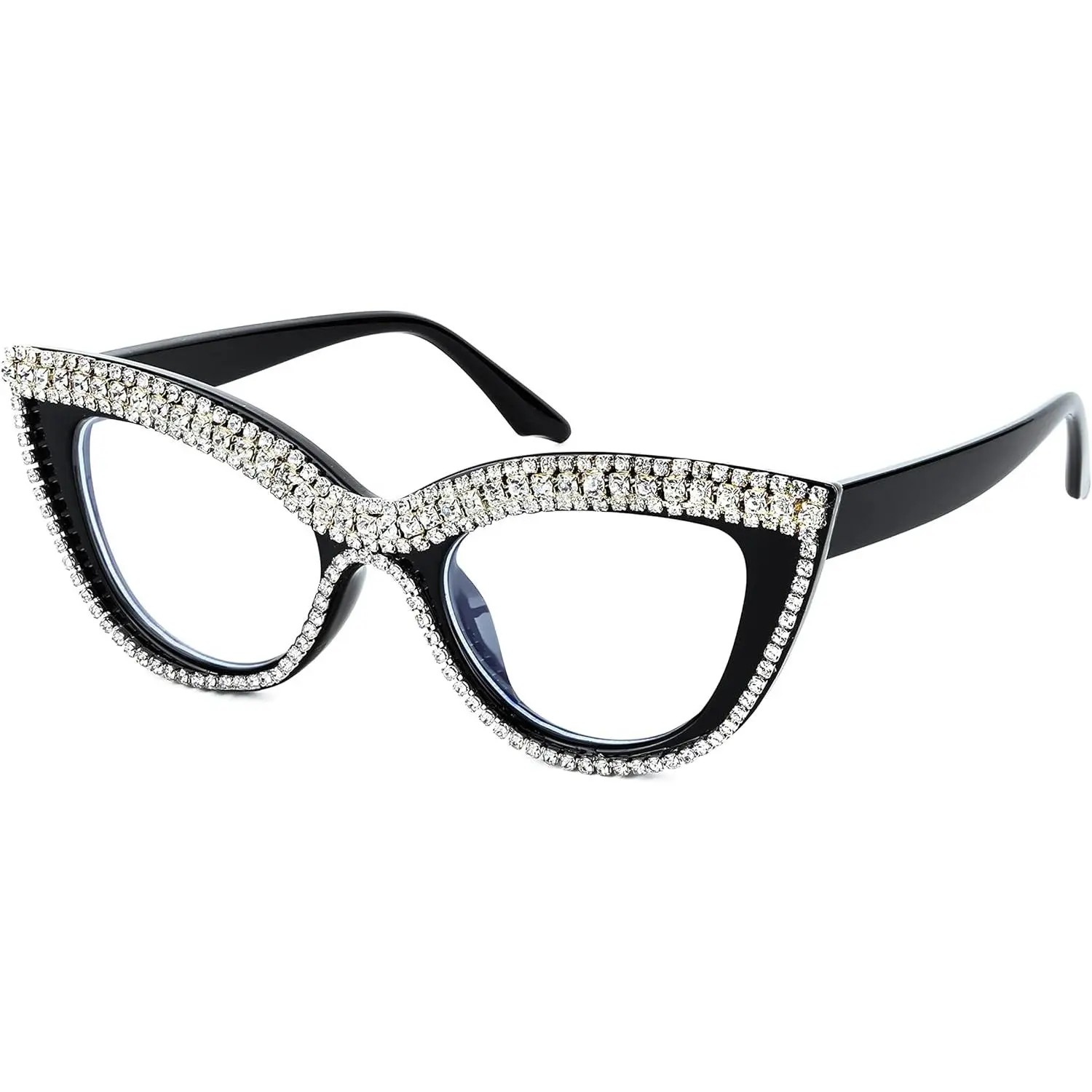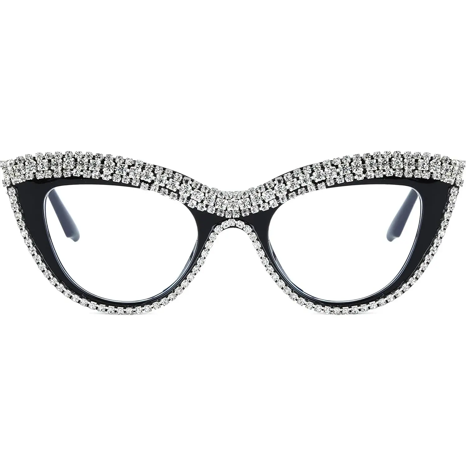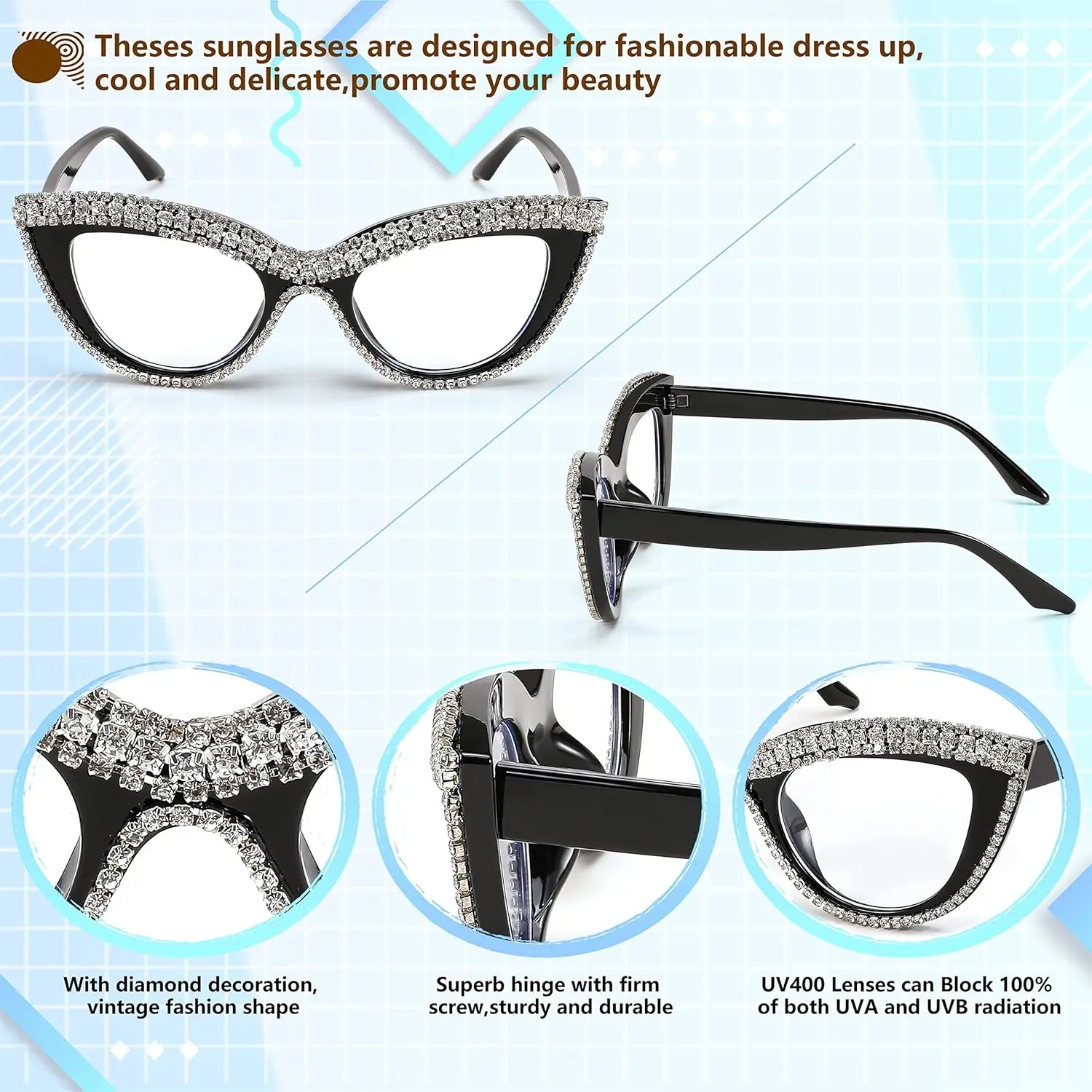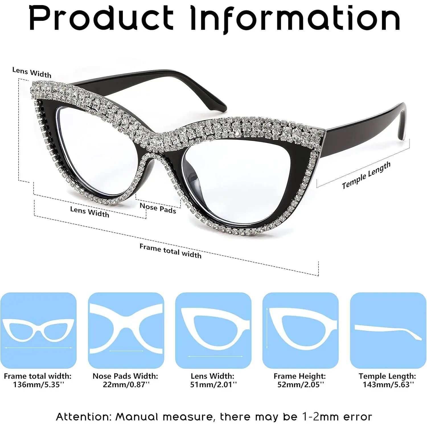 ·Stylish Diamond Cat Eye Glasses Design: These FEISEDY oversized, vintage cat glasses instantly stand out in the crowd, with hand-set diamond frames let you shine anywhere. All details ensure a comfortable fit. This square frame is eye-catching and flattering on many face shapes.