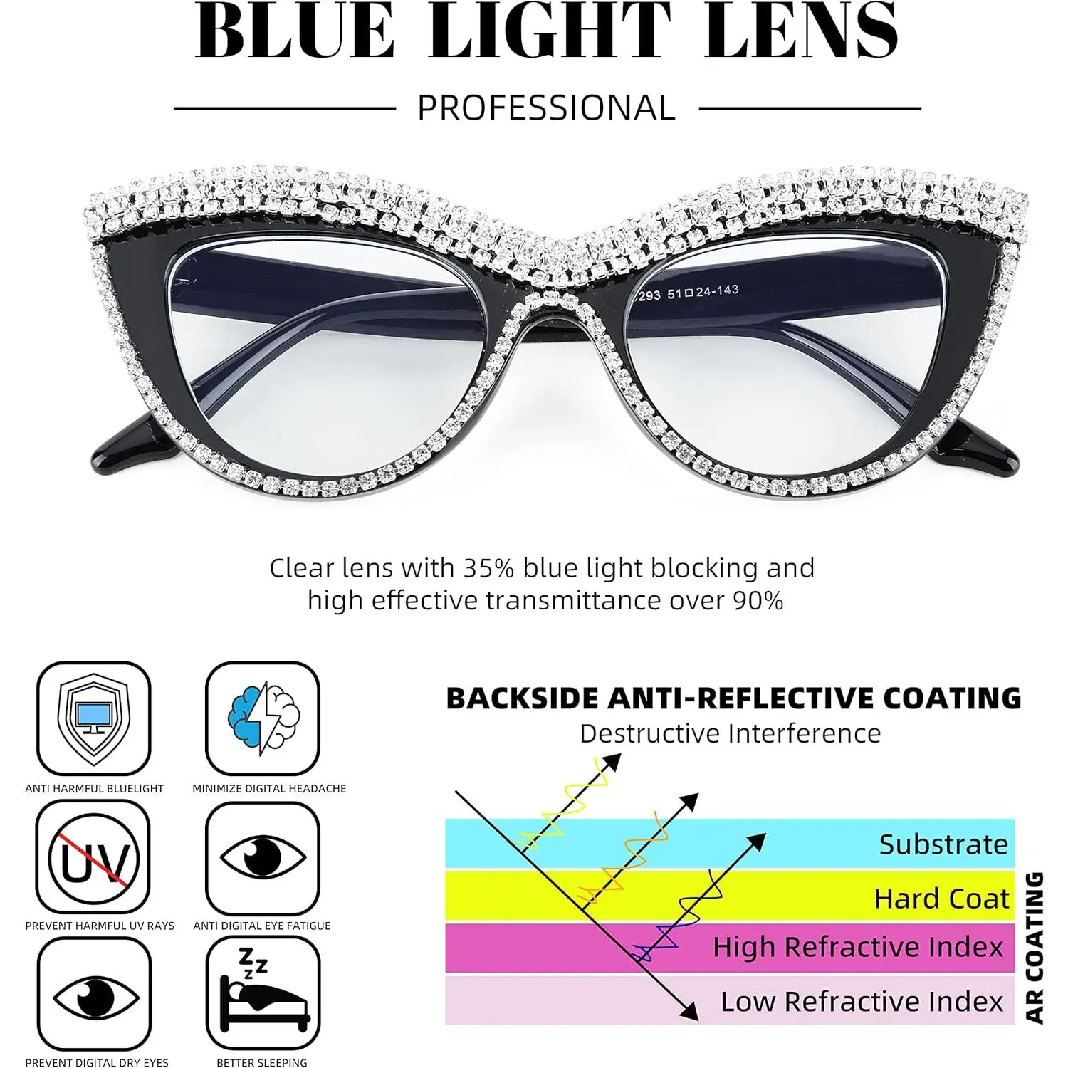·Blue Llight Blocking Lenses: The cat eye glasses use blue light blocking lens that filter blue light and UV, protect your eyes, and reduce eyestrain during use computer, phone or other electronic product. Suitable for work, study, shopping, partying, etc.