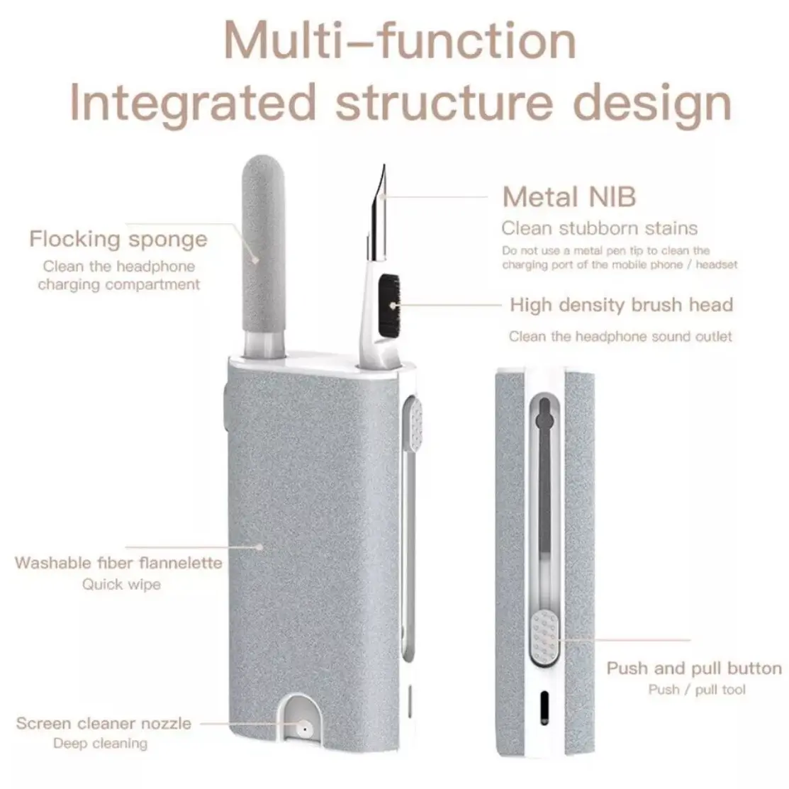 Multifunctional integrated structure design/flocking sponge-cleaning the earphone charging compartment