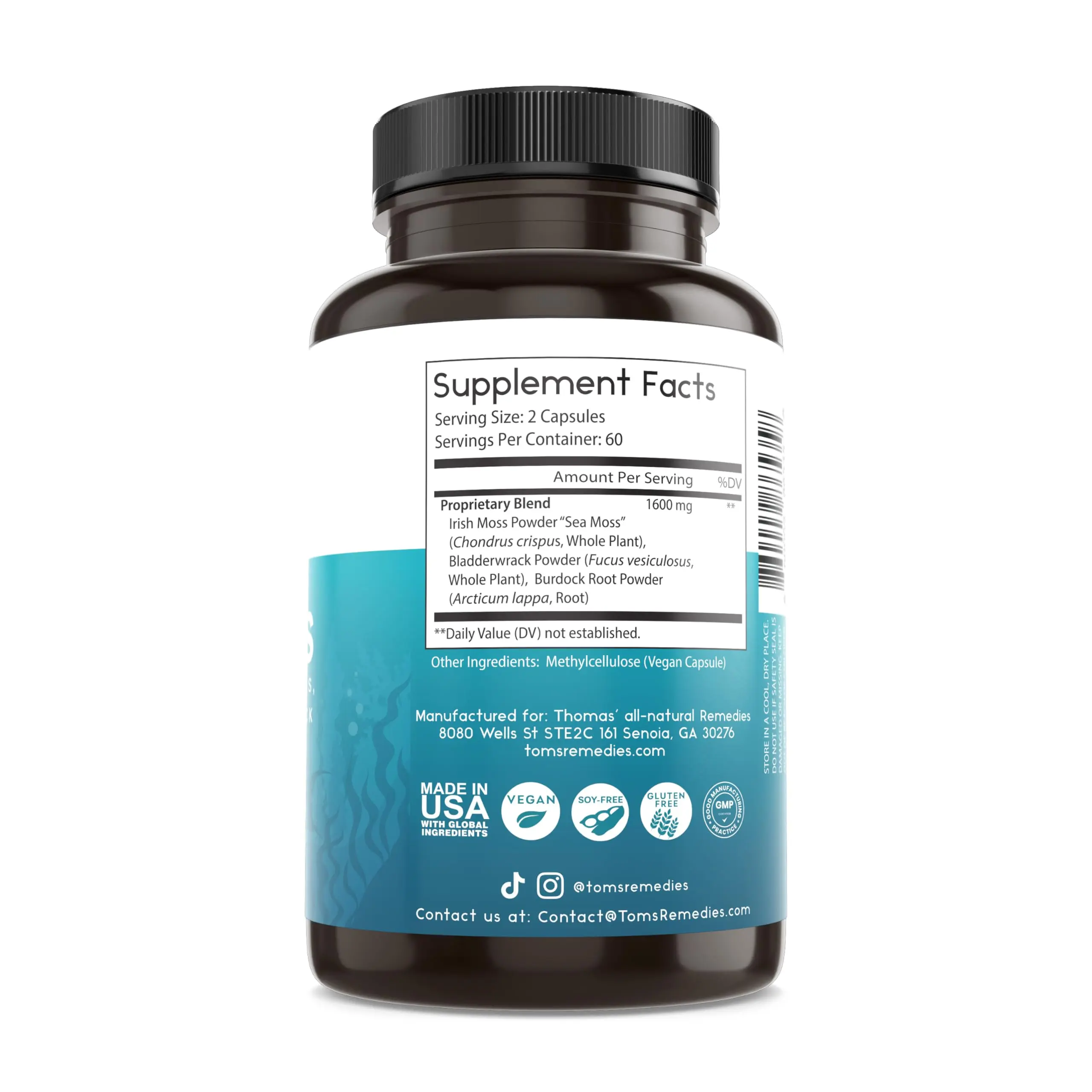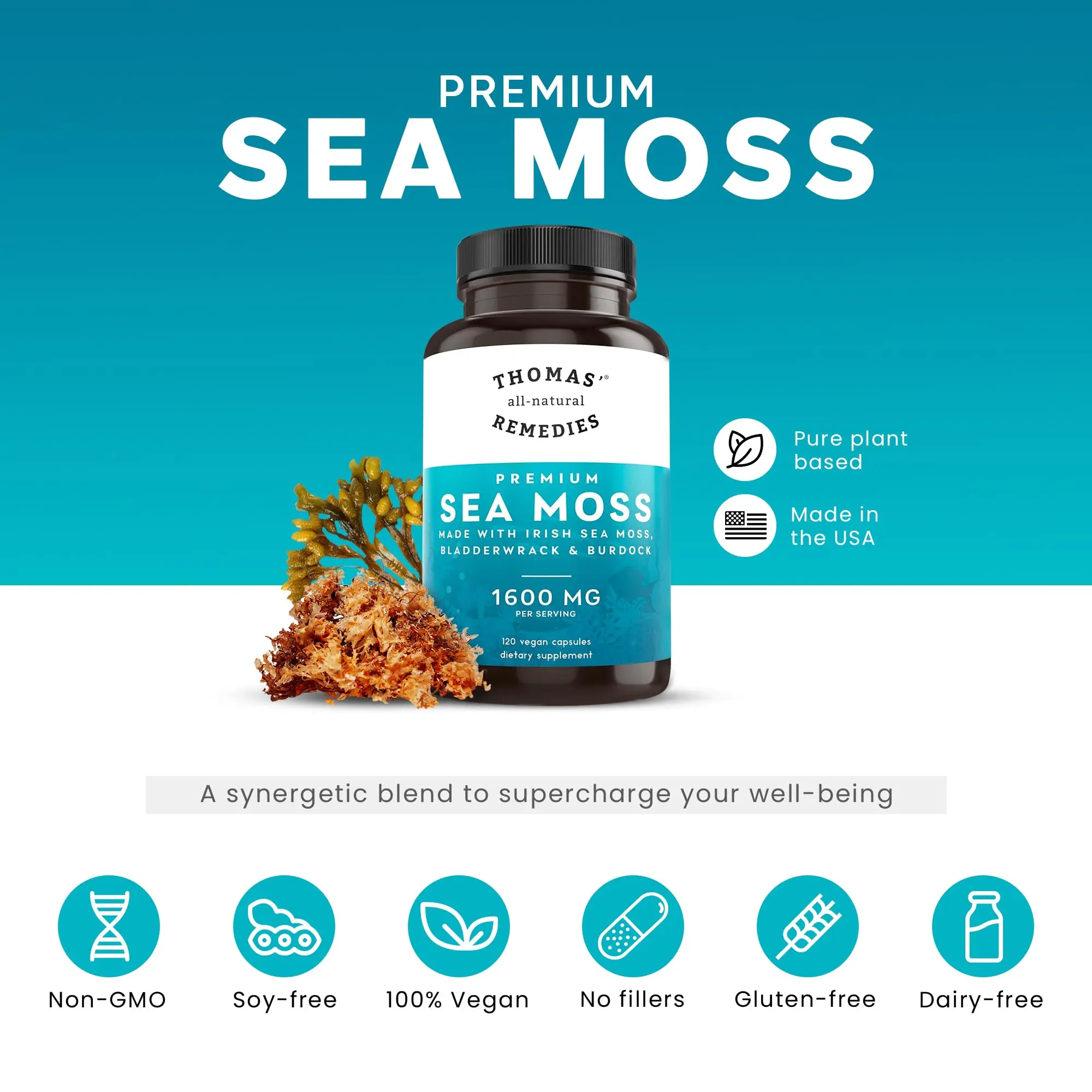 Made with Quality: Our sea moss raw organic energy pills are made completely natural and contain no harmful elements. Our bladderwrack and burdock root capsules are vegan-friendly and non-GMO and contain no artificial colors, flavors, gluten, or soy. Complete care has been taken to make our Irish sea moss pills to help ensure optimal nutrient retention.