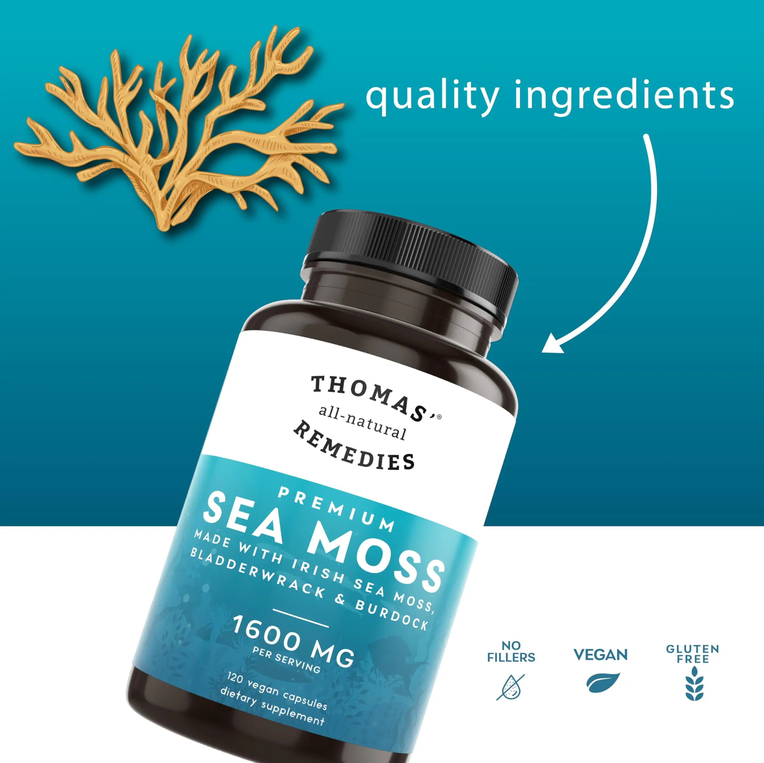 Elevate your digestive well-being with fiber-rich bladderwrack root and essential vitamins, helping improve regularity and overall gut wellness. Crafted carefully, our Irish sea moss bladderwrack burdock root capsules are vegan-friendly and non-GMO and do not contain artificial additives.