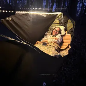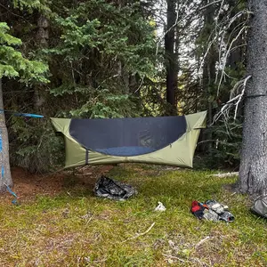 First hang was more like a first swing. 30 mph wind gusts and a low of 17 degrees here in Michigan. A little more blankets than usual but the tent held up great. Easy in easy out. I got the works bundle with it and everything worked great. Originally, I woke up at 2 am to purchase it and the sale wasn’t applying. However, after an email, we spoke with the owner himself and got our sale. Tip top customer service.