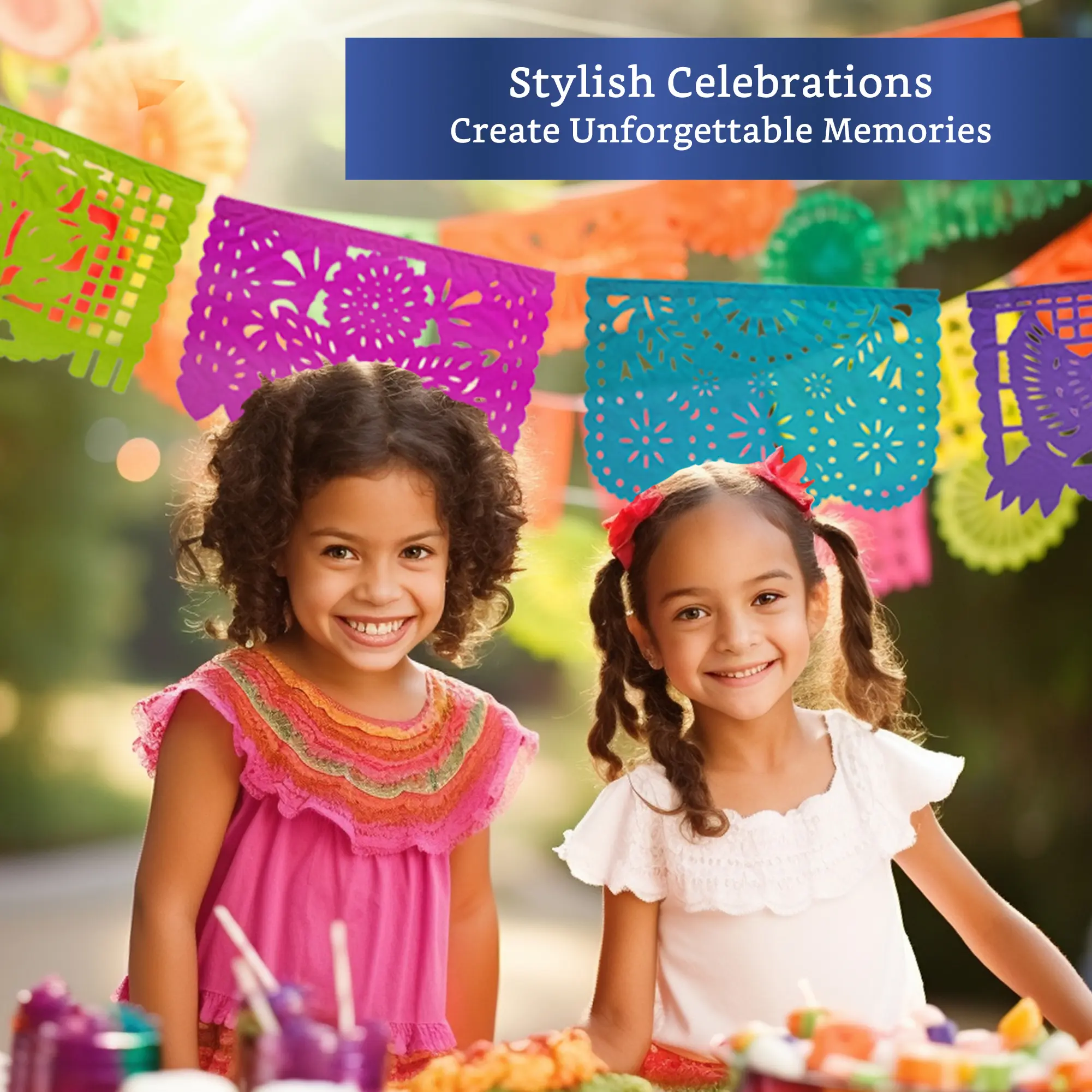 Celebrate with the heart of Mexico using our authentic Papel Picado banners. Their handcrafted detail and vivid colors create unforgettable decorations for any party or space. Bring joy, tradition, and beauty to your next event—order your Papel Picado today!
