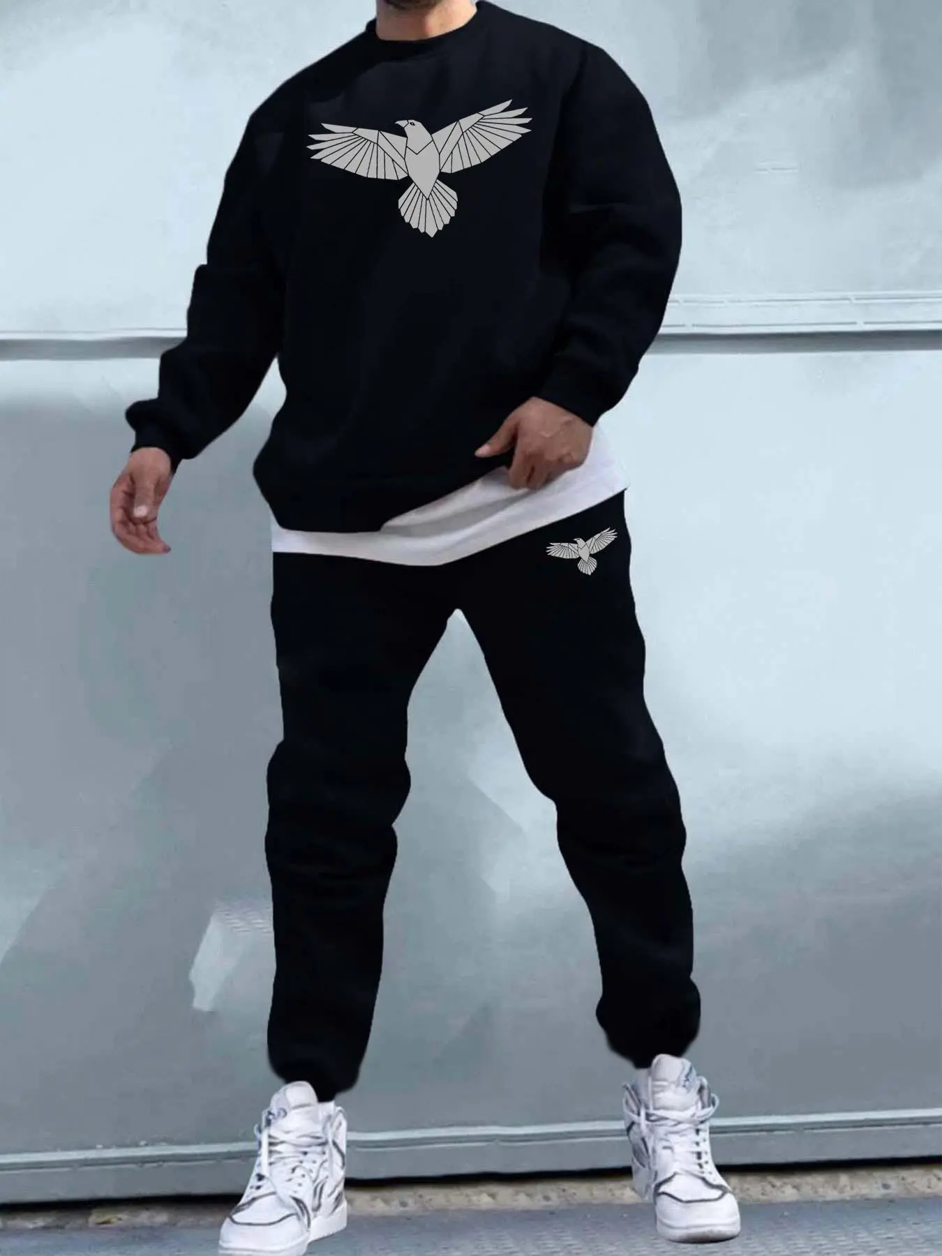 Men's Eagle Print Drop Shoulder Sweatshirt & Pocket Sweatpants Two-piece Set, Loose Casual Fashion Cozy Two Piece Outfits for Daily Outdoor Wear, Men's Clothing for Spring Fall