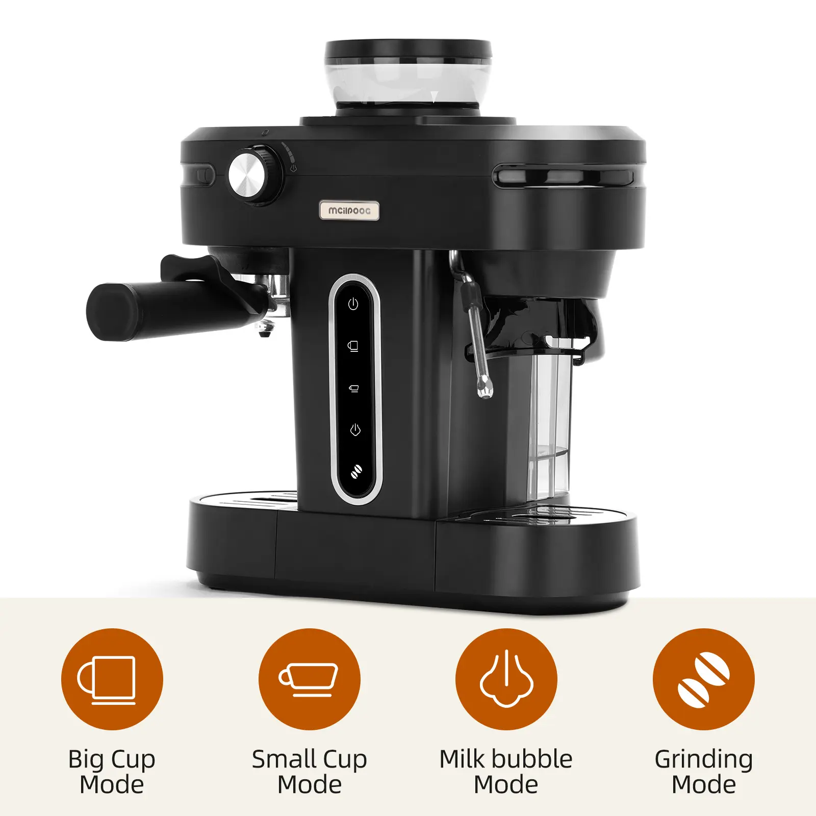 ·Different from similar Compact products,the Mcilpoog 3-In-1 espresso machine with coffee bean grinder,Extract and Froth All In one .The Coffee Maker integrated grinder to go from beans to espresso in under one minute