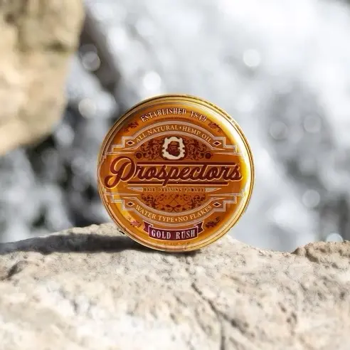 Gold Rush is a water-soluble medium hold pomade that is perfect for creating any hair style without drying out the hair or creating flakes. It is made with hemp oil, which conditions and moisturizes hair and scalp, promoting a healthy scalp and creating a healthy environment for hair growth. The non-greasy feeling of the pomade provides a comfortable and natural feel on the hair.