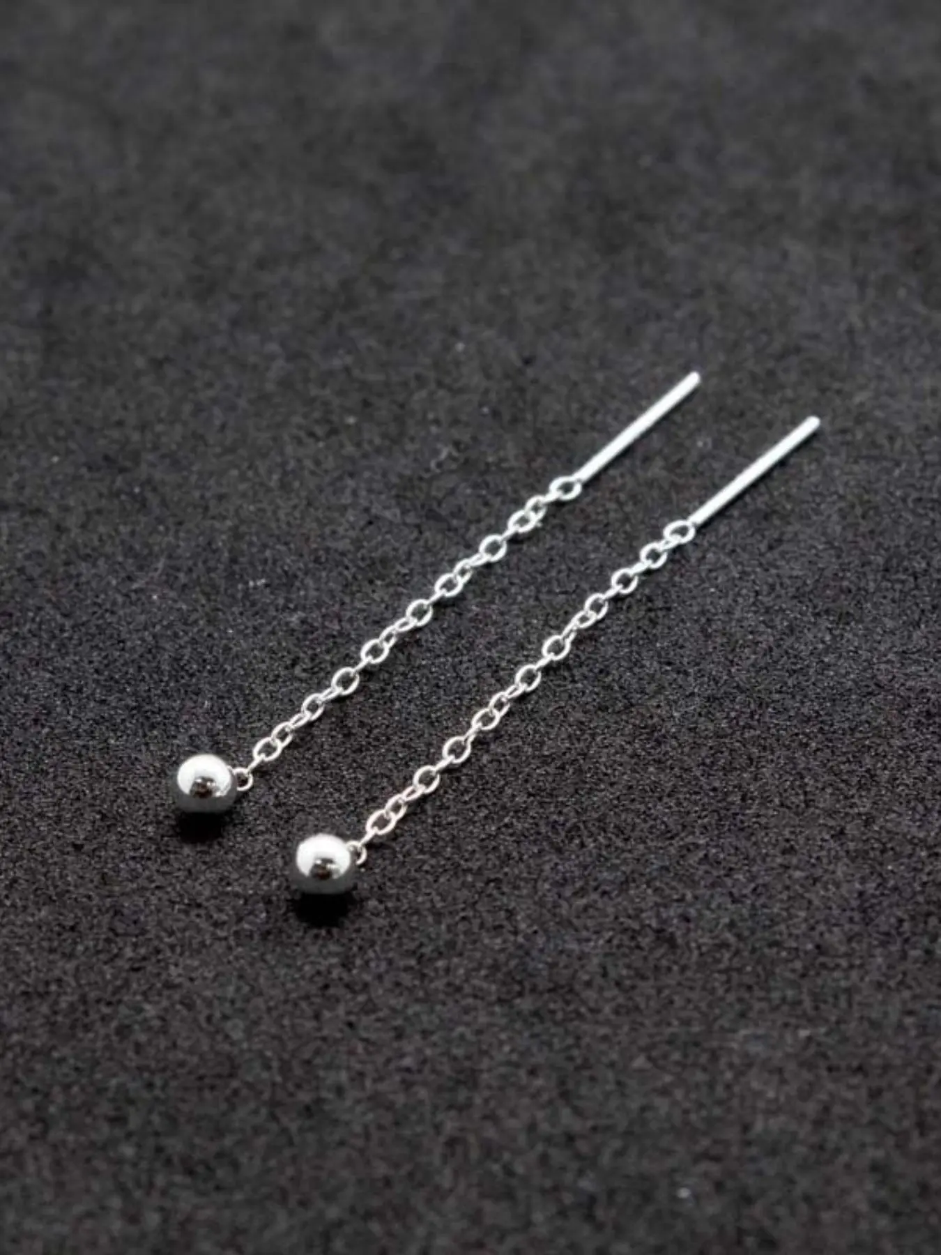 S999 Sterling Silver Round Bead Design Threader Earrings, Minimalist Line Earrings for Women, Trendy All-match & Exquisite Jewelry for Birthday Gift