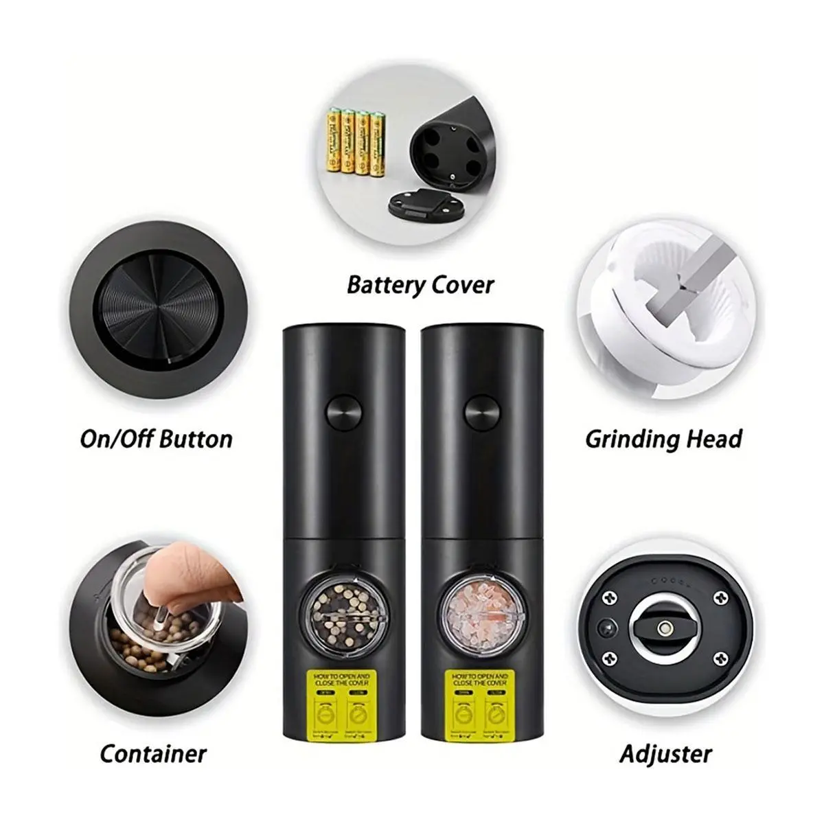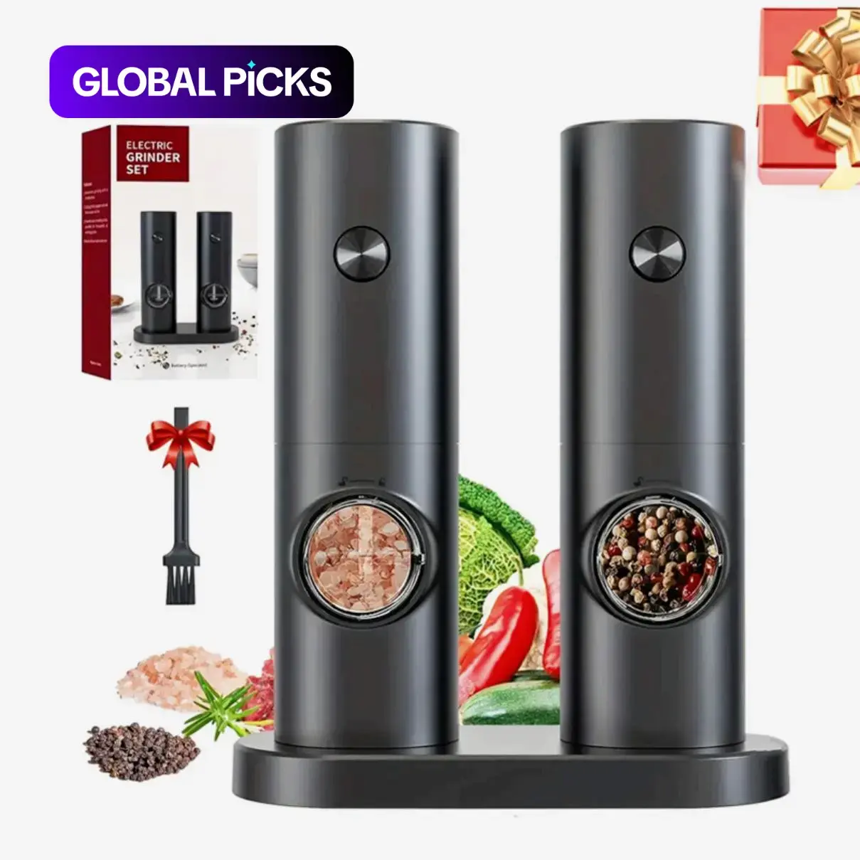 Electric Salt & Pepper Grinder Set, 2-Piece Adjustable Coarseness Salt & Pepper Mills with Base, Pepper Shakers Grinder, Seasoning Utensils for Home Dining Room & Barbecue, Kitchen Gadgets #GLOBAL PICKS