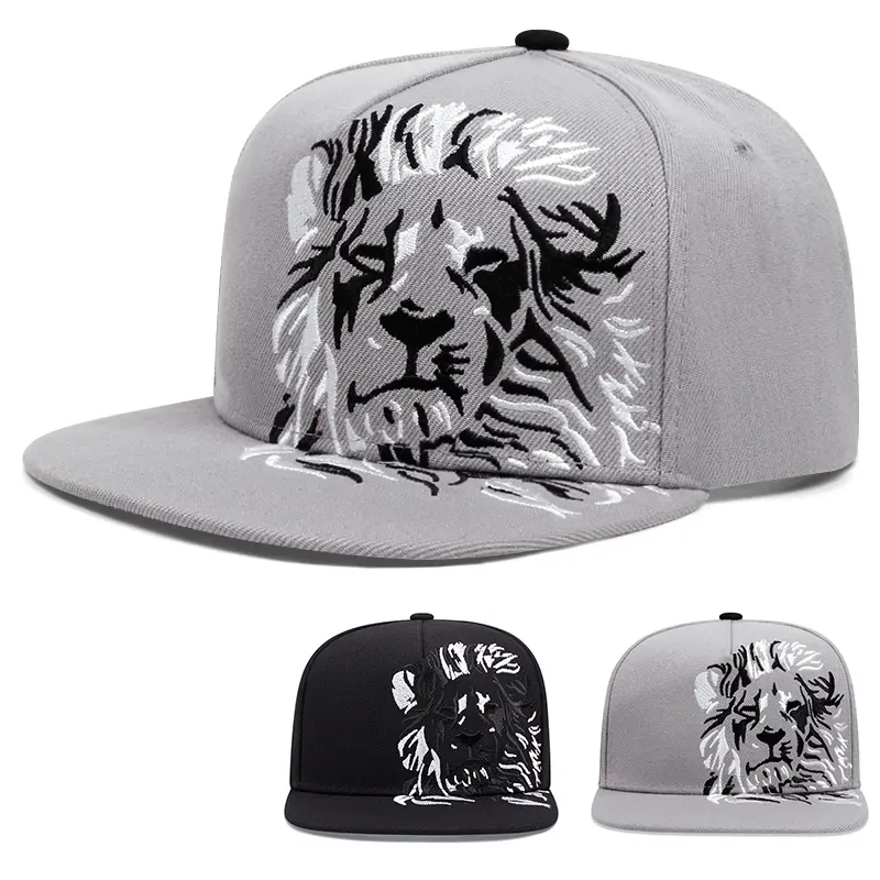 lion embroidered baseball cap men hip hop flat brim hat fashion snapback cap casual sun visor cap women