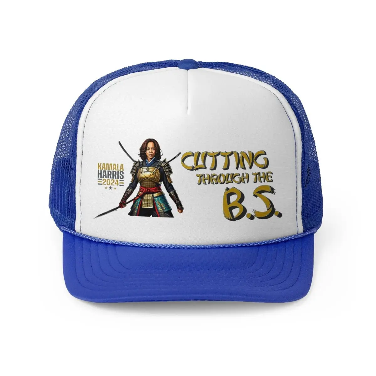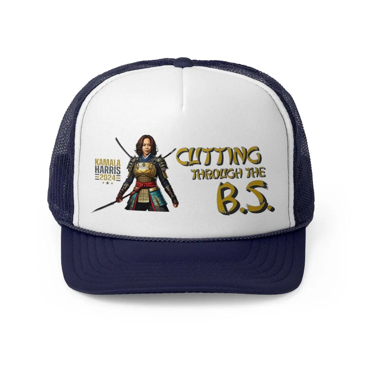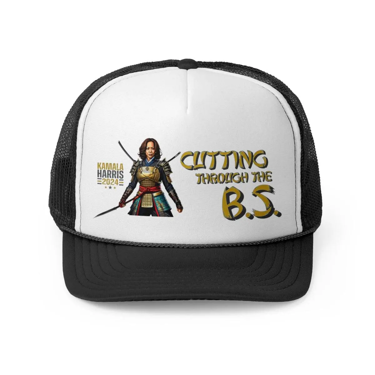 Kamala Harris "Cutting Through the B.S." Samurai Trucker Hat - Bold Political Statement Cap