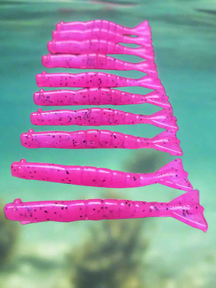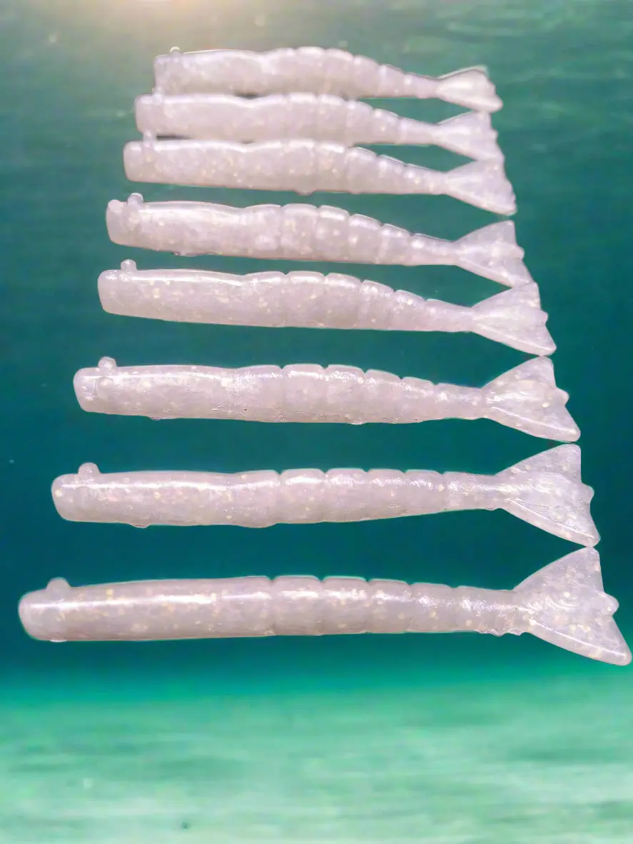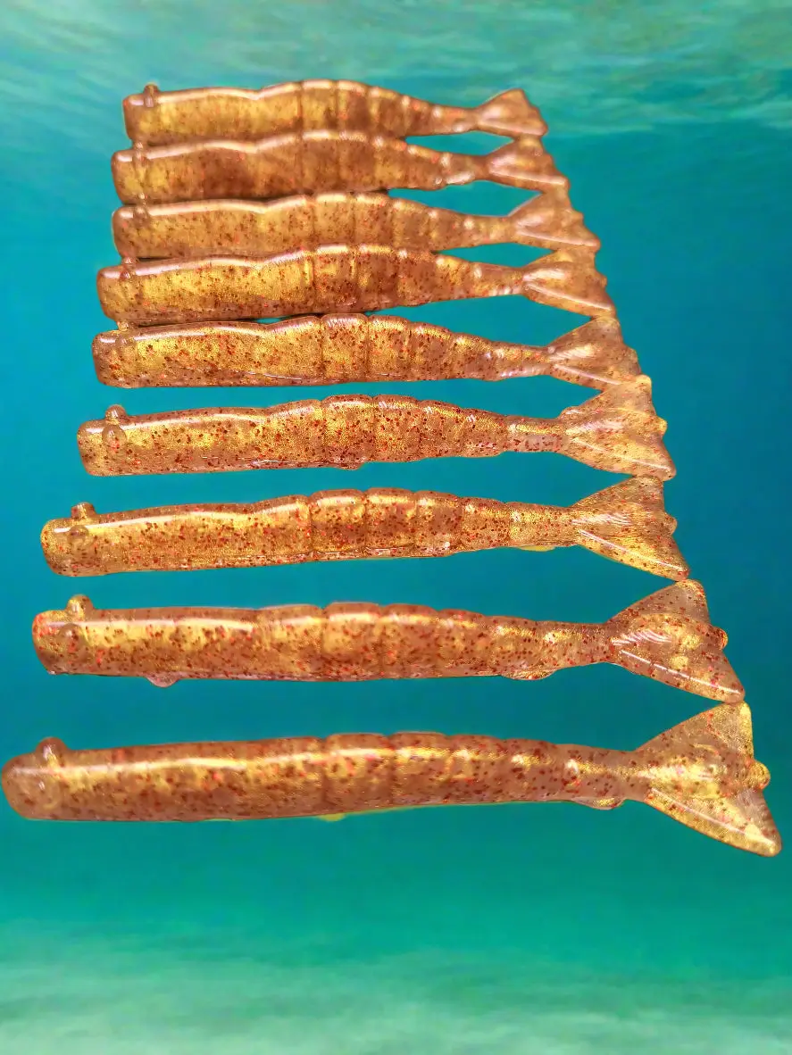 One of the reasons for this shrimp is that some of our local fishing guides who love fishing with live shrimp sometimes have trouble with the quality of the available shrimp or the lack of availability altogether. After sending our Captain Steve with several packs and him catching several limits of Red Drum, Speckled Trout, and even a couple of really fat flounders we just had to share them. Each Package will come with, that's right, 10 lures hence the name "10 Count Shrimp". This lure is 3.8 inches long and just the right size to match what you would typically find in live bait at a tackle shop. You can fish them with a poping cork, the Marker 212 rig, and even just a regular jig head of your choice. All of our soft plastic lures come scented with a fish attractant sent.