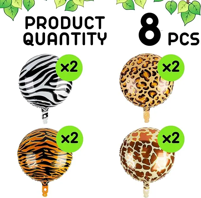 ·You will receive a set of 8 pieces aluminum foil animal print balloons safari, namely: 2 pcs zebra print balloons, 2 pcs leopard print balloons, 2 pcs tiger print balloons and 2 pcs giraffe print balloons. This quantity varied assortment of safari animal balloons are sufficient to fulfill your needs
