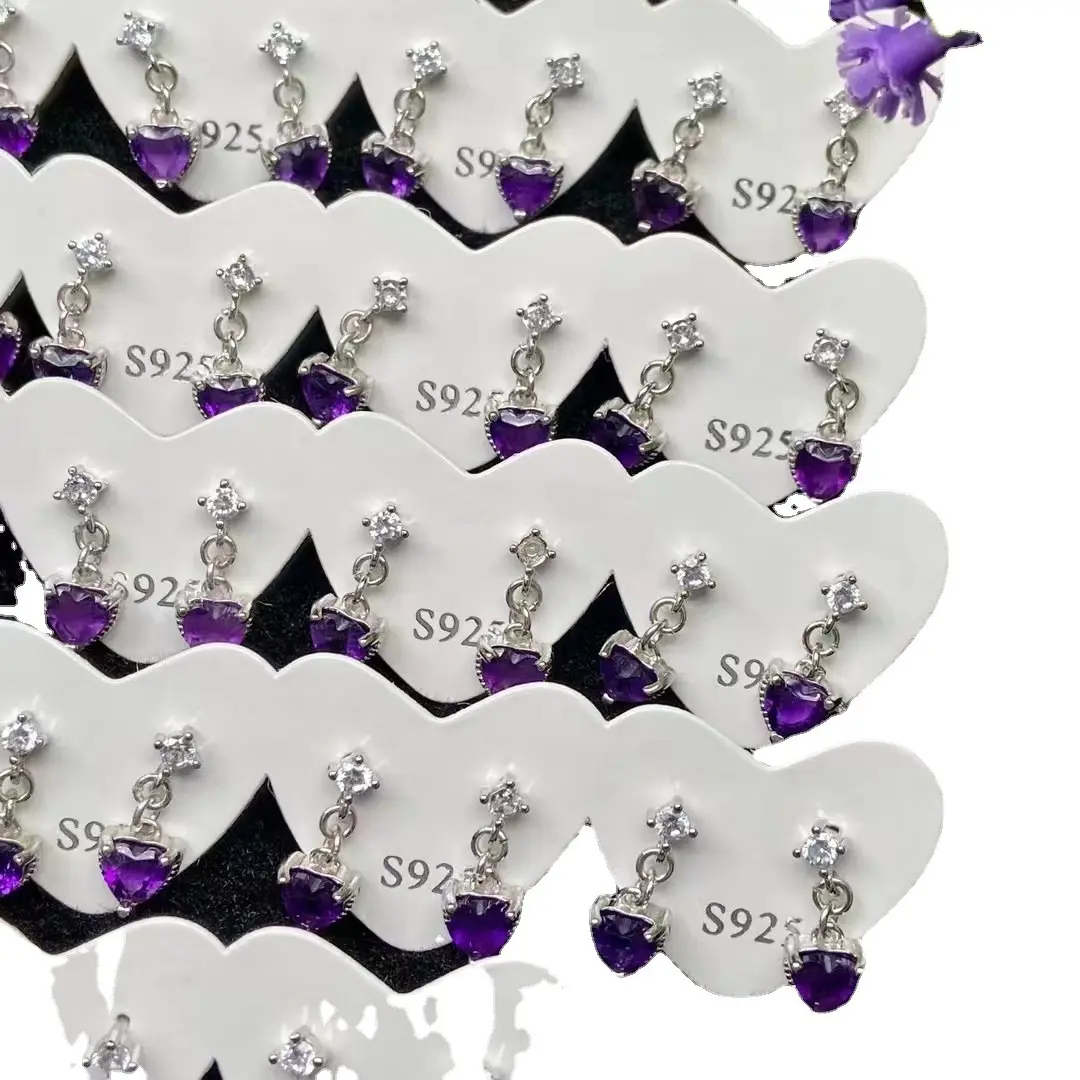 5pc Lucky Stone Earrings Women's Natural Cut Amethyst Heart-Shaped Earrings Sterling Silver Needle Delicate Mosaic Crystal Earrings Ornament Natural Crystal Personalized Birthstones