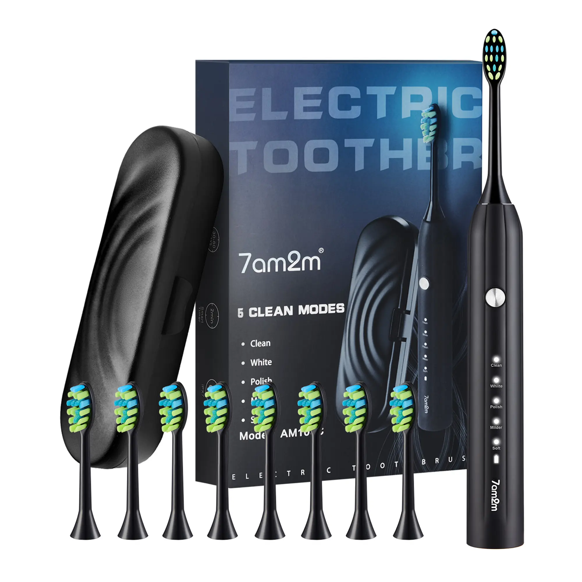 7AM2M Sonic Electric Toothbrush adopts the advanced sonic technology, produces 40,000 brush strokes per circle for a powerful dynamic cleaning action. The cleaning effect is more obvious than manual toothbrushes, and gives you extra gentle brushing and protects the enamel of the teeth than a rotating toothbrush. Over time, the blue bristles on both ends will gradually fade to white, notifying you to pay attention to replacing the brush head. Just try it! A week of use can help reduce the dental plaque and you get a healthy oral environment. Two weeks of use can completely improve your oral health and help you smile confidently:)