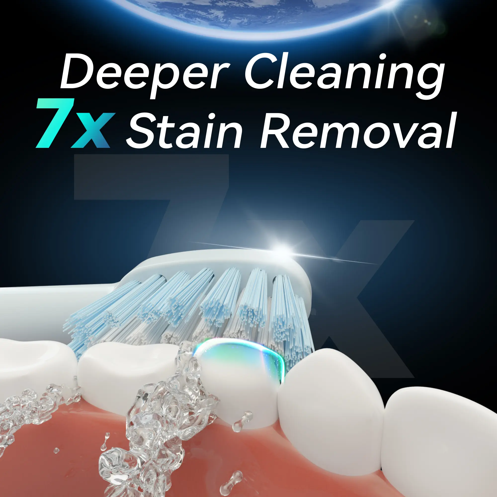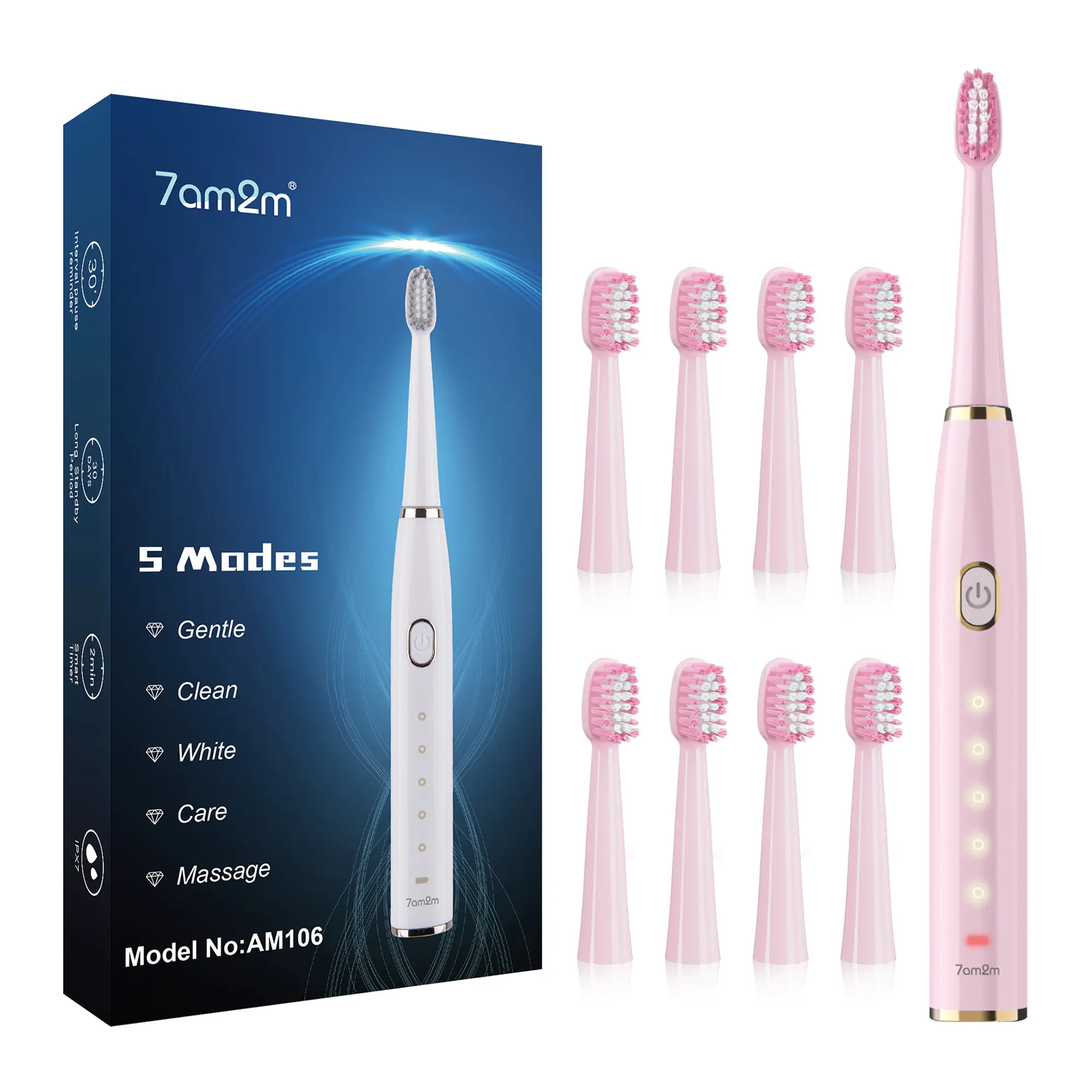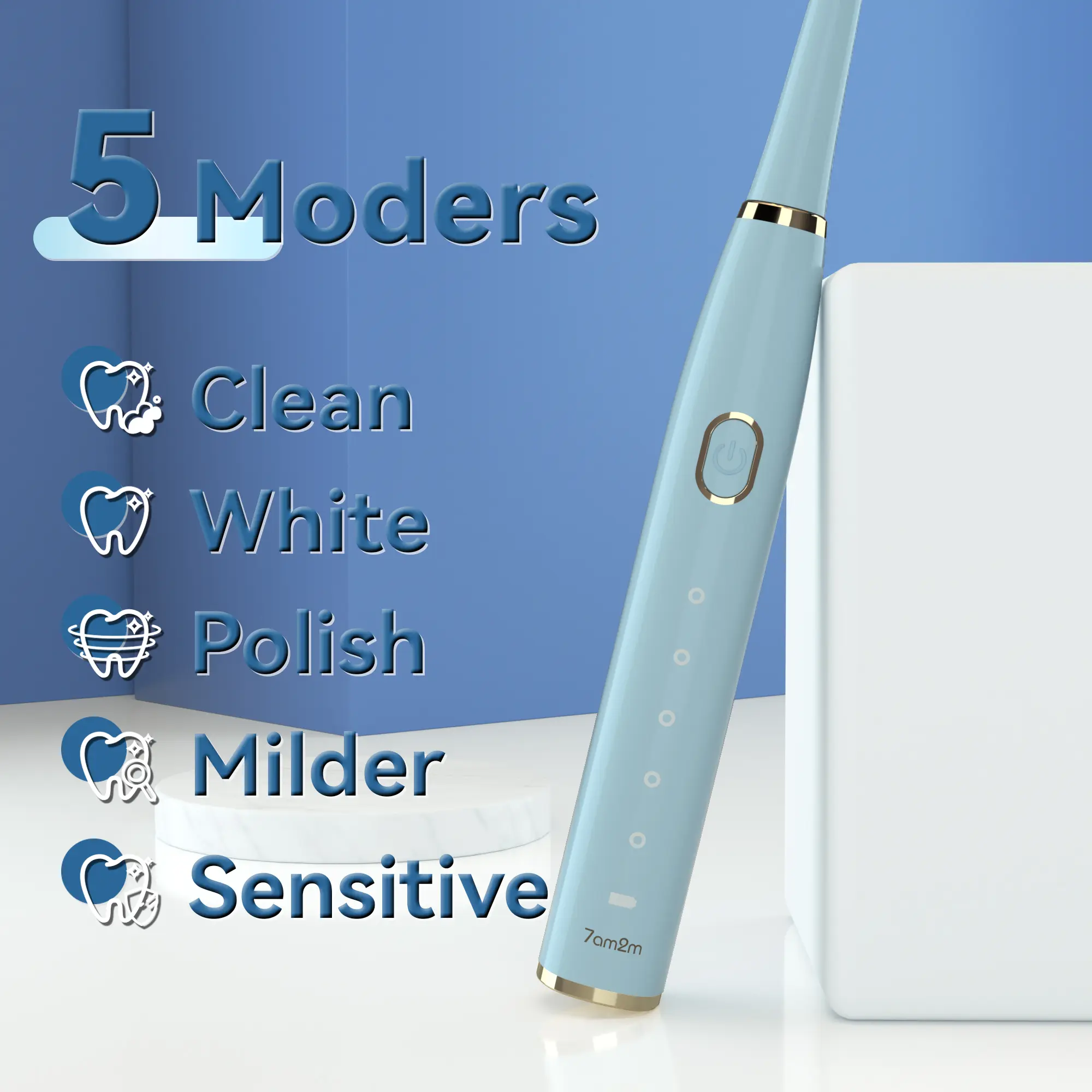 7am2m Sonic Electric Toothbrush adopts the advanced sonic technology, produces 48000 brush strokes per circle for a powerful dynamic cleaning action. The cleaning effect is more obvious than manual toothbrushes, and gives you extra gentle brushing and protects the enamel of the teeth than a rotating toothbrush. Over time, the blue bristles on both ends will gradually fade to white, notifying you to pay attention to replacing the brush head. Just try it! A week of use can help reduce the dental plaque and you get a healthy oral environment. Two weeks of use can completely improve your oral health and help you smile confidently:)