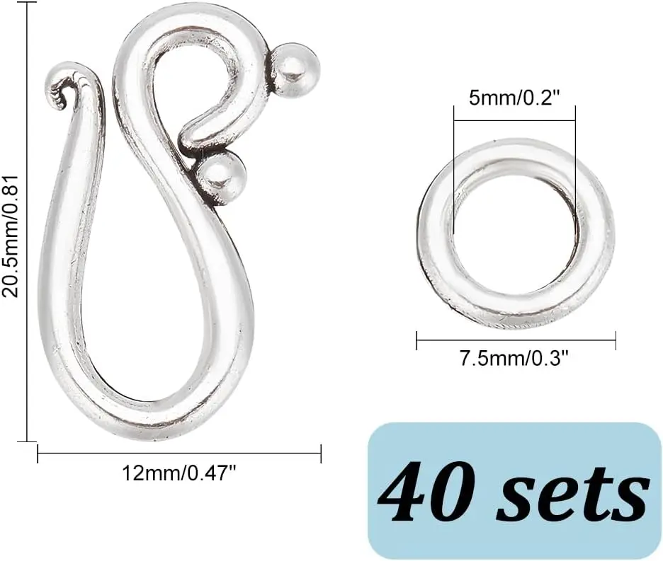 40 Sets S Ring Toggle Clasps Drop Tibetan Silver S Hook Ring Jewelry Clasps Ring Clasps Connectors for Necklace Bracelet Jewelry Making DIY Crafts