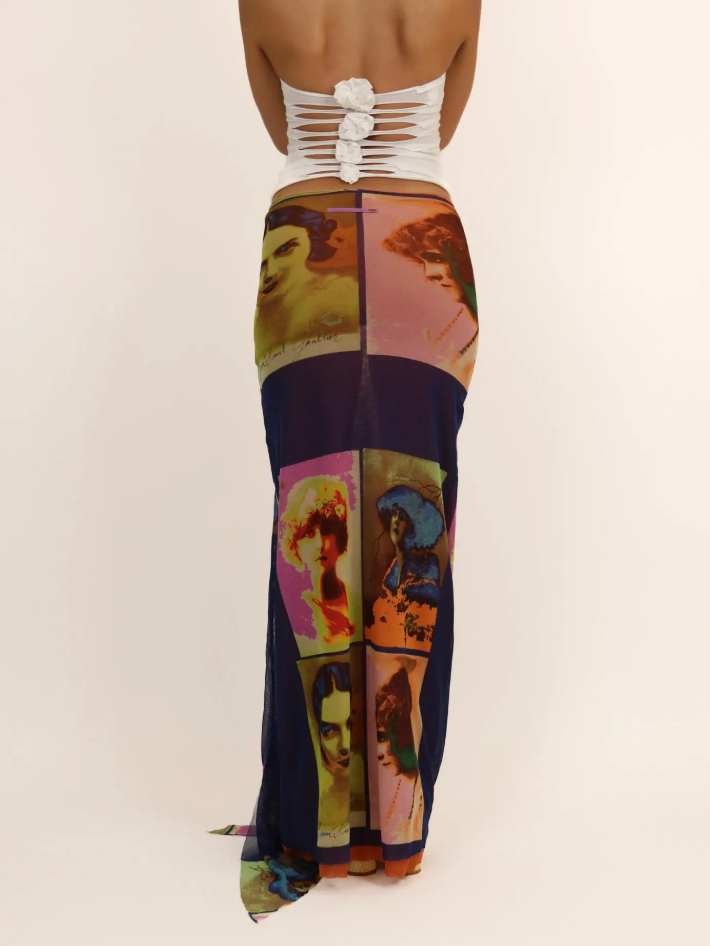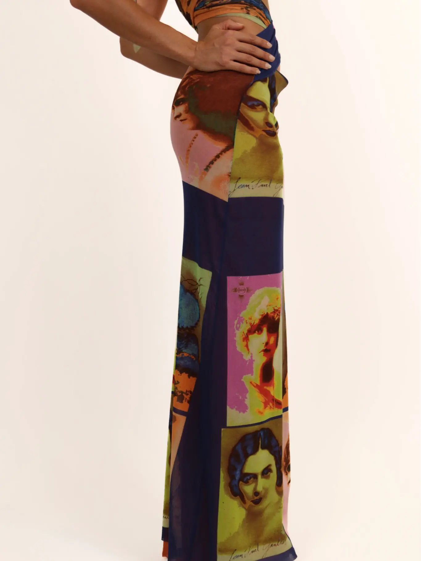 Jean Paul Gaultier Soleil SS 2002 Vintage “Portraits” Mesh Wrap Maxi Dress