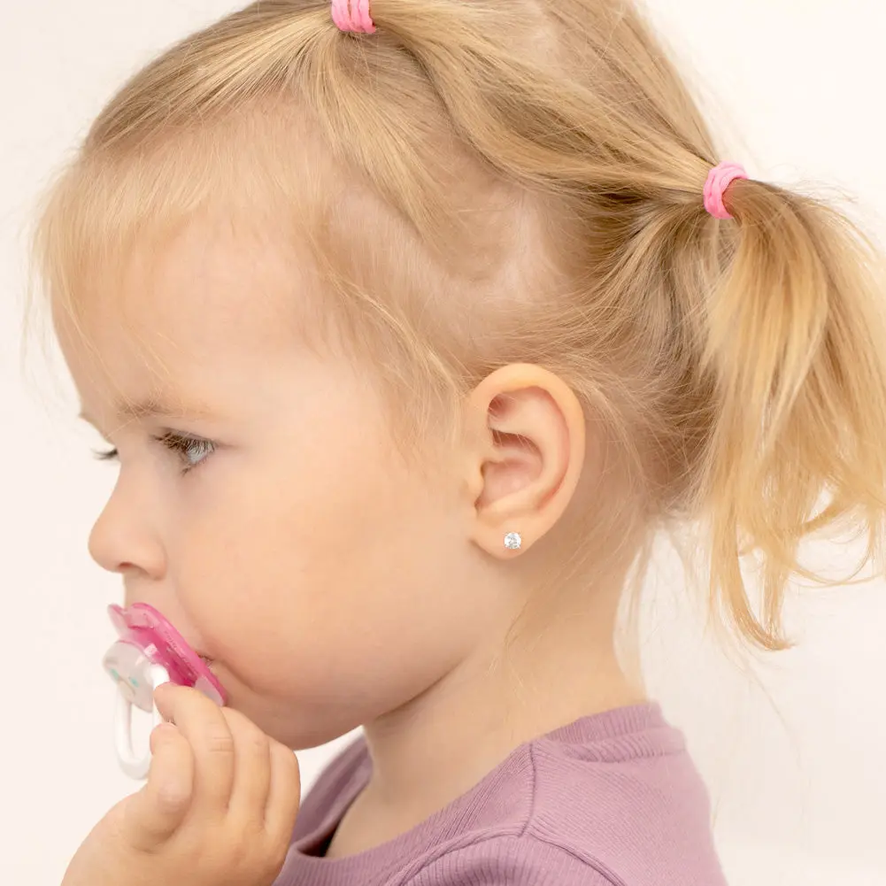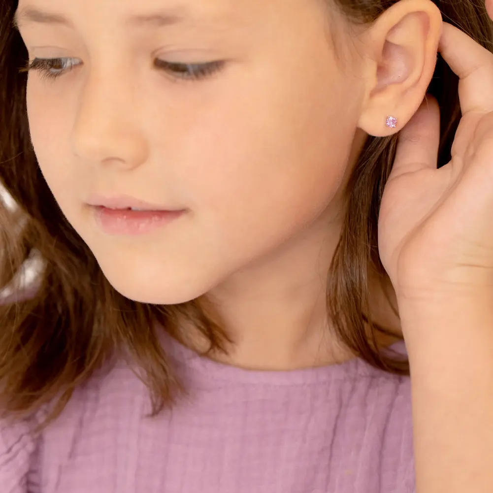 Every little girl must have these elegant 4mm sterling silver cubic zirconia studs. They are suitable for special occasions and everyday wear. Modern and classic they offer versatility and sophistication to any outfit. These kids' earrings are crafted in 925 sterling silver and feature high-quality cubic zirconia stones. High-quality screw backs are comfortable and prevent lost earrings. These hypoallergenic screw-back earrings are perfect for children with sensitive skin. A complimentary gift box is included for easy gift giving!