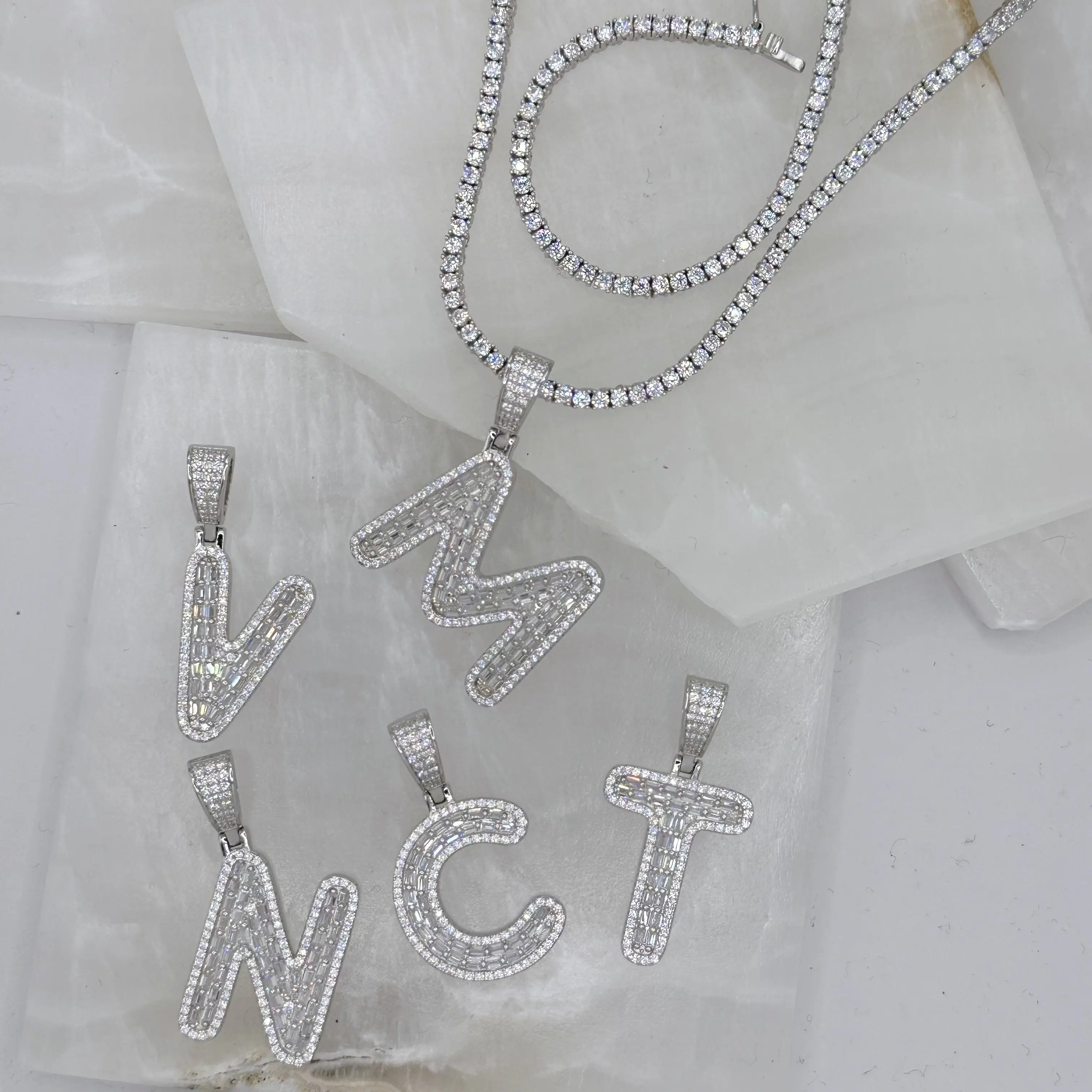 SILVER ICY INITIAL BAGUETTE II TENNIS necklace