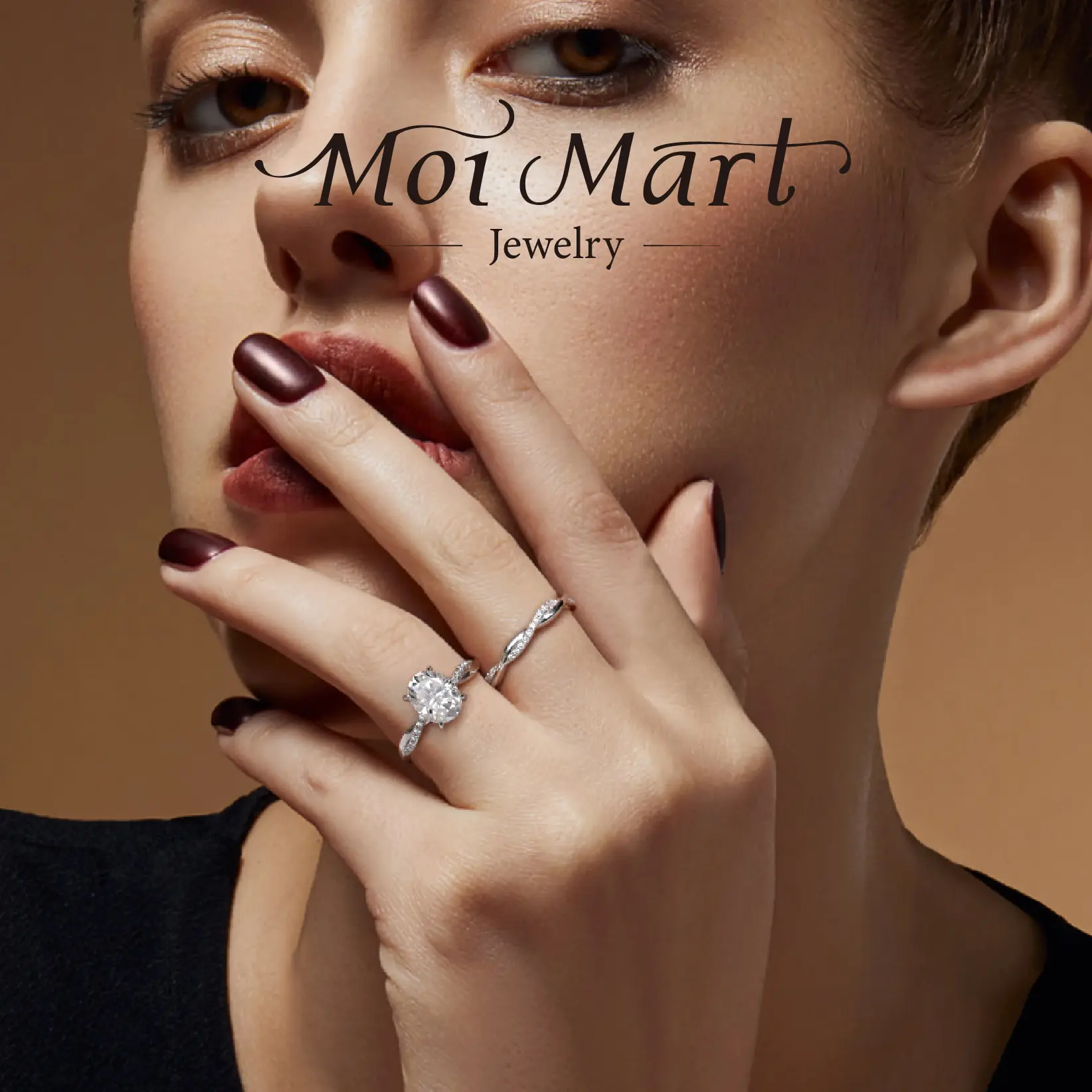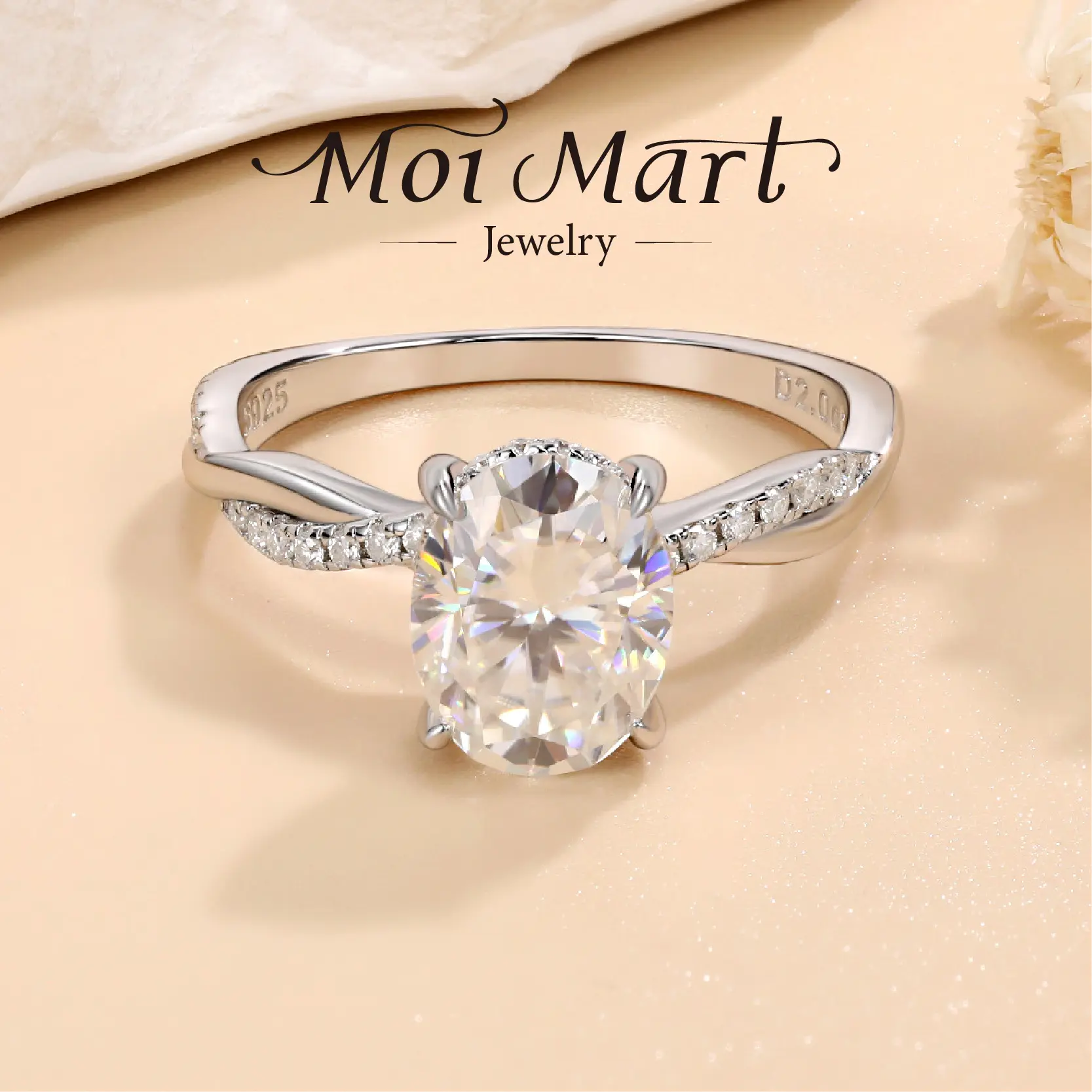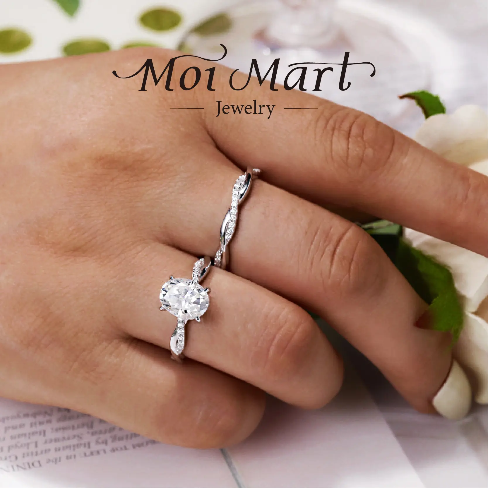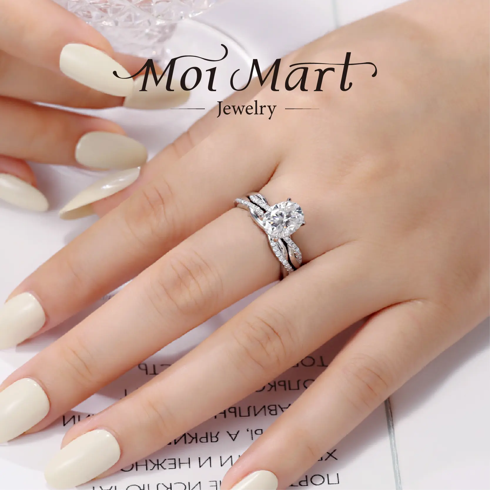 MOI MART 2Ct Oval Cut Synthetic Moissanite ring, Stackable in s925 sterling Silver engagement ring perfect gift Solitaire Wedding Infinity Bridal Band Set
