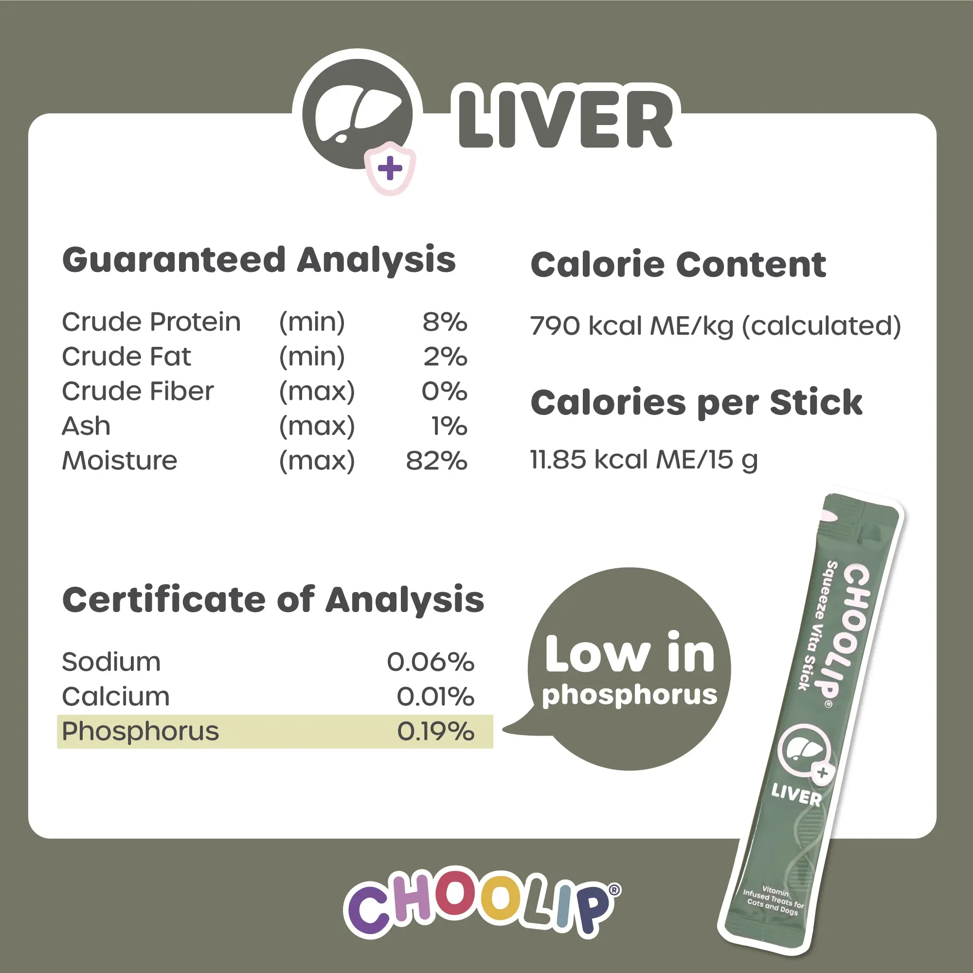 Choolip Squeeze Vita Stick Liver is a creamy, lickable supplement formulated to support liver function, digestion, and overall vitality — without pills or complicated feeding.