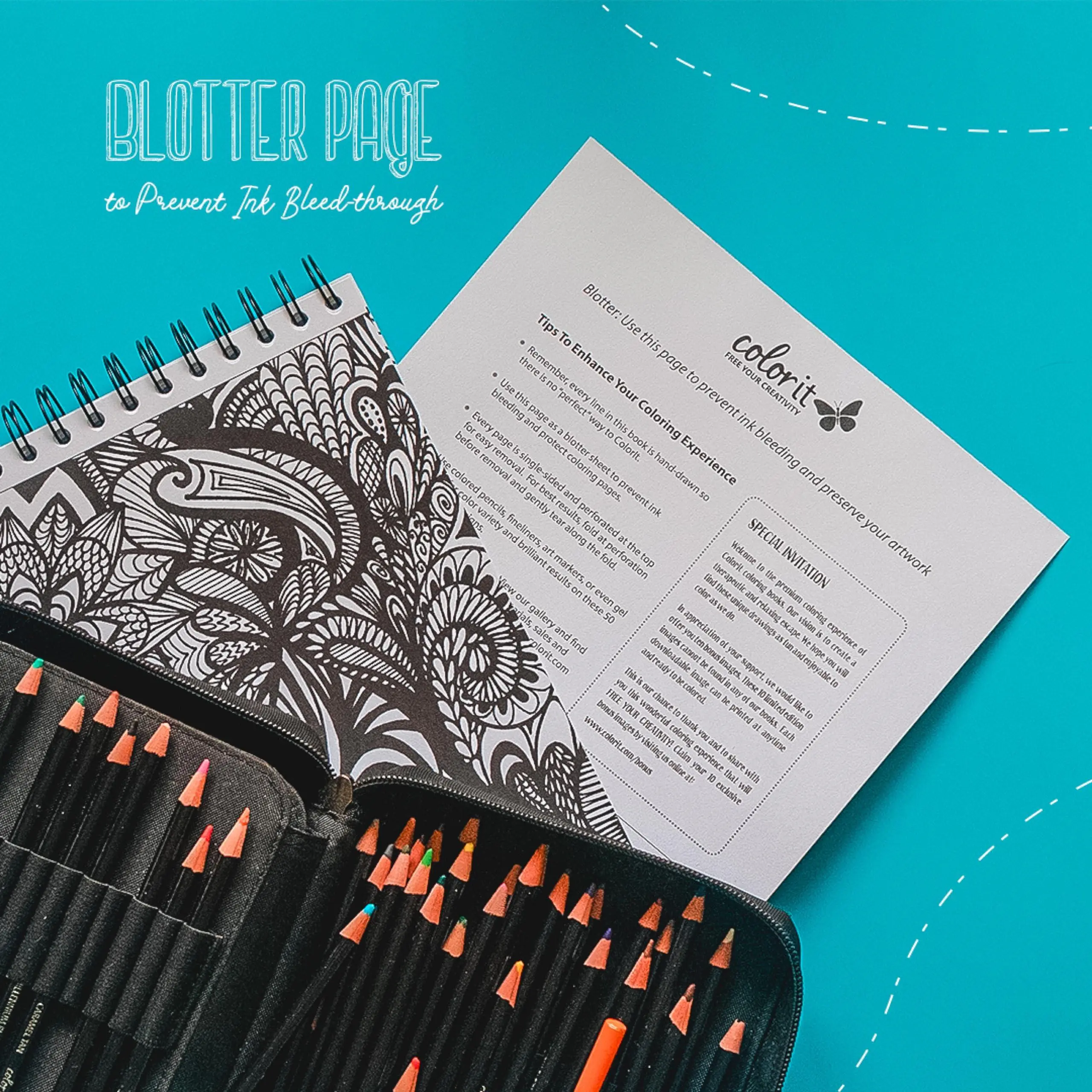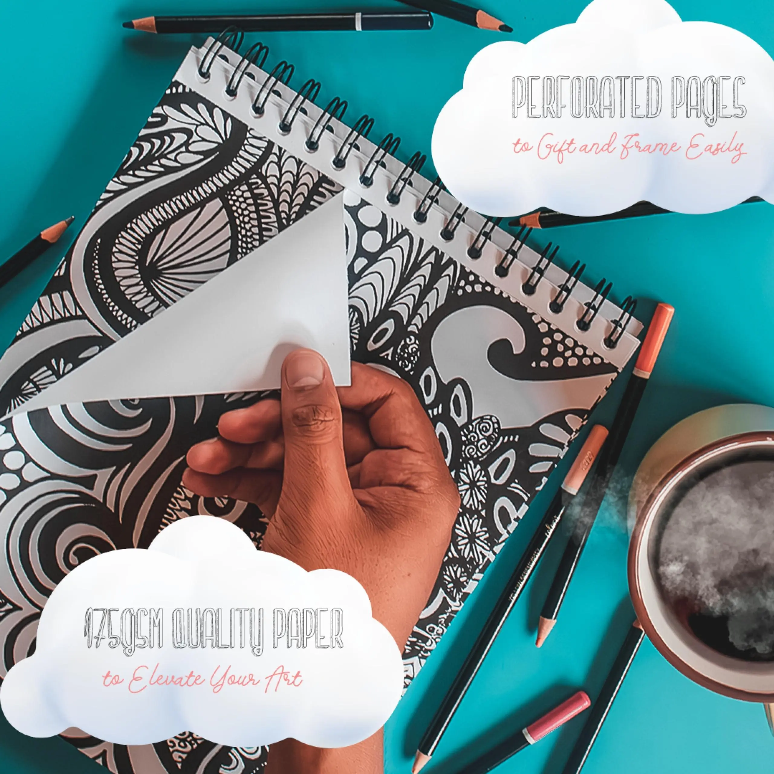 ·Utilize various coloring mediums such as art markers, colored pencils, glitter gel pens, and watercolors on 175 gsm quality paper. The removable ink blotter page prevents color bleed-through.