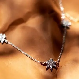 Adorned with 48 real white diamonds, this necklace adds a touch of sparkle and glamour to any outfit. The diamonds complement the silver perfectly, adding a luxurious touch.