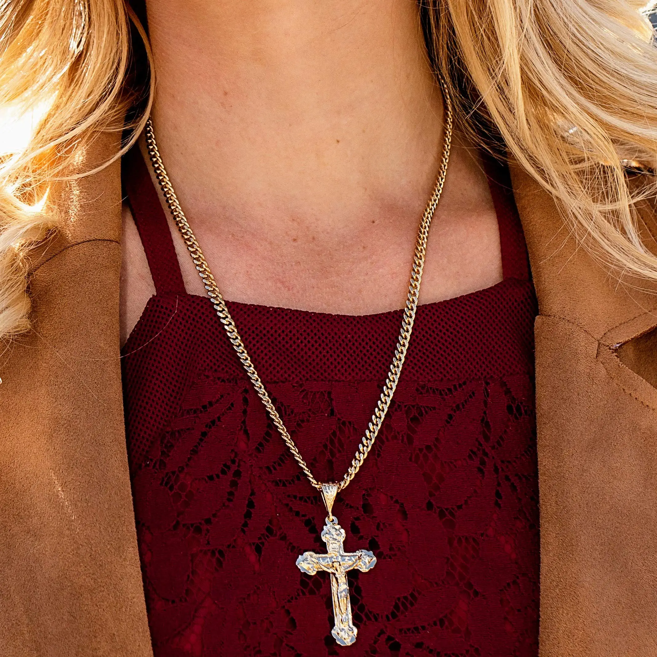 These gorgeous Crucifix Pendants are Made To Last with up to 20X more 24 karat gold plating than standard electroplated fashion jewelry; Comes with 20 inch long curb link necklace chains