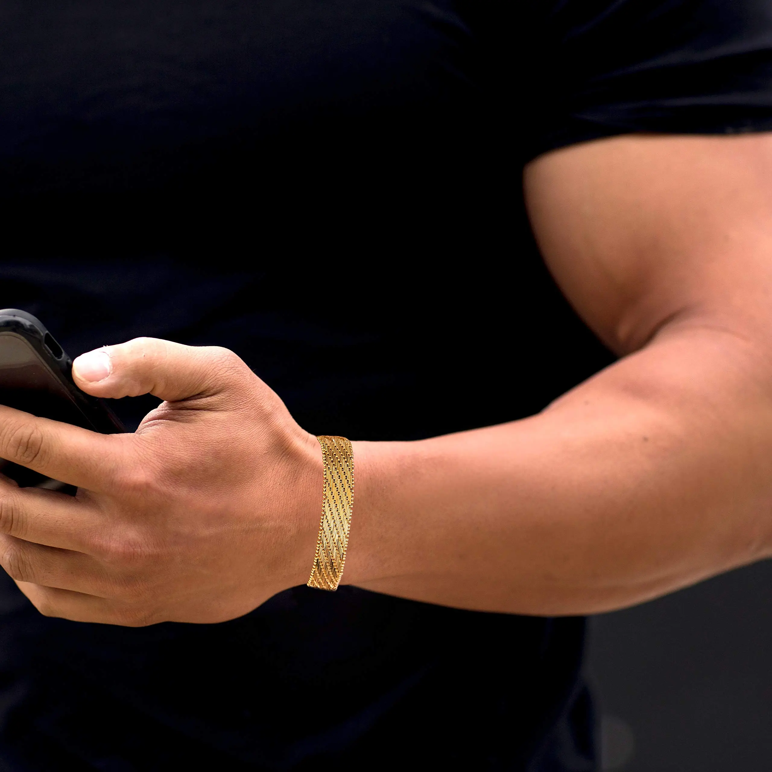Choice of 7mm ( ~ 1/4 inch ) or 13mm ( ~ 1/2 inch ) these Flexible Basket Weave Bracelet are Made To Last with up to 20X more 24 karat gold plating than other electroplated fashion jewelry
