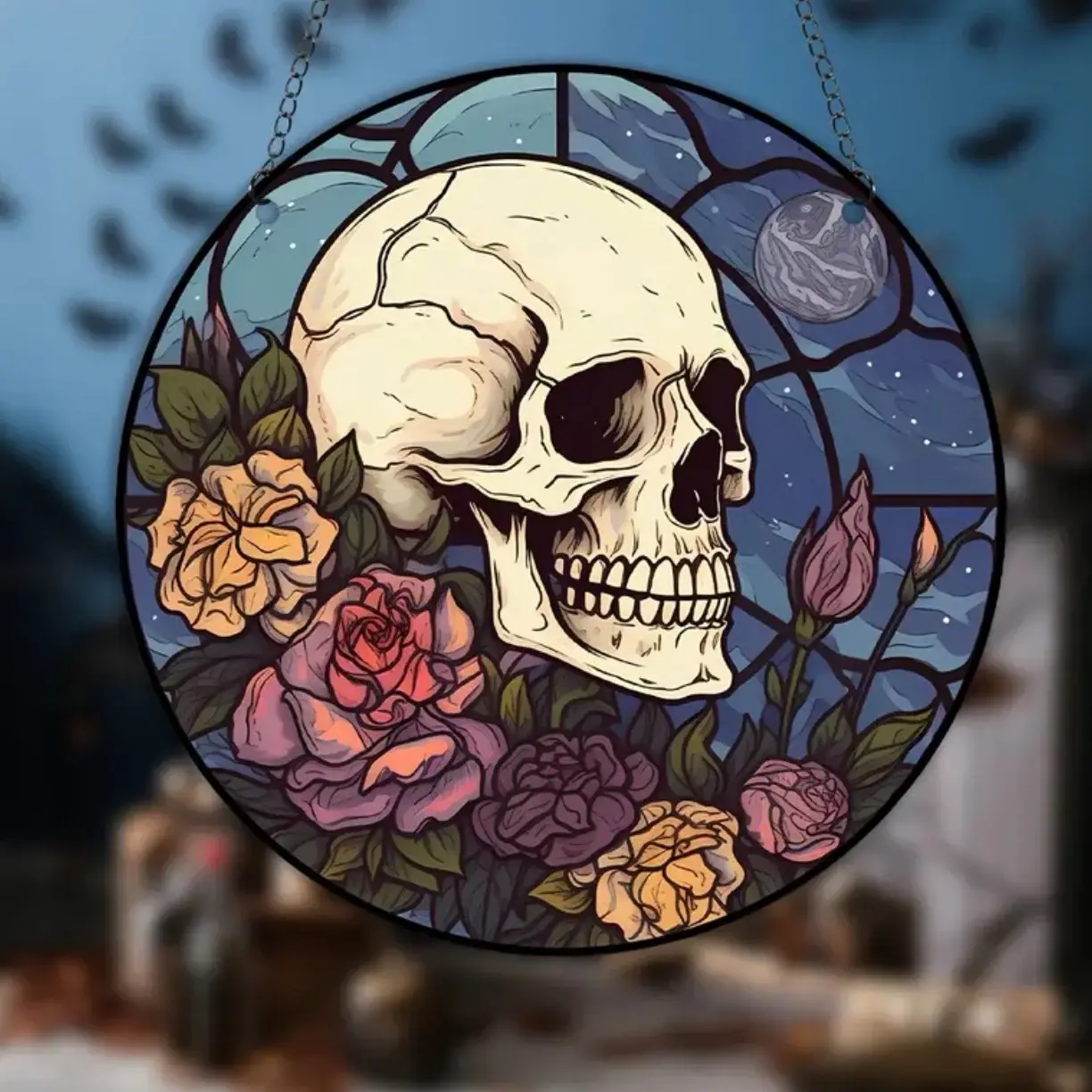 Made from durable, shatter-resistant acrylic, this suncatcher mimics the look of traditional stained glass while being lightweight and easy to display. Perfect for setting a spooky yet stylish tone for Halloween, it’s an ideal addition to your festive decorations or a unique gift for those who appreciate a touch of gothic charm.