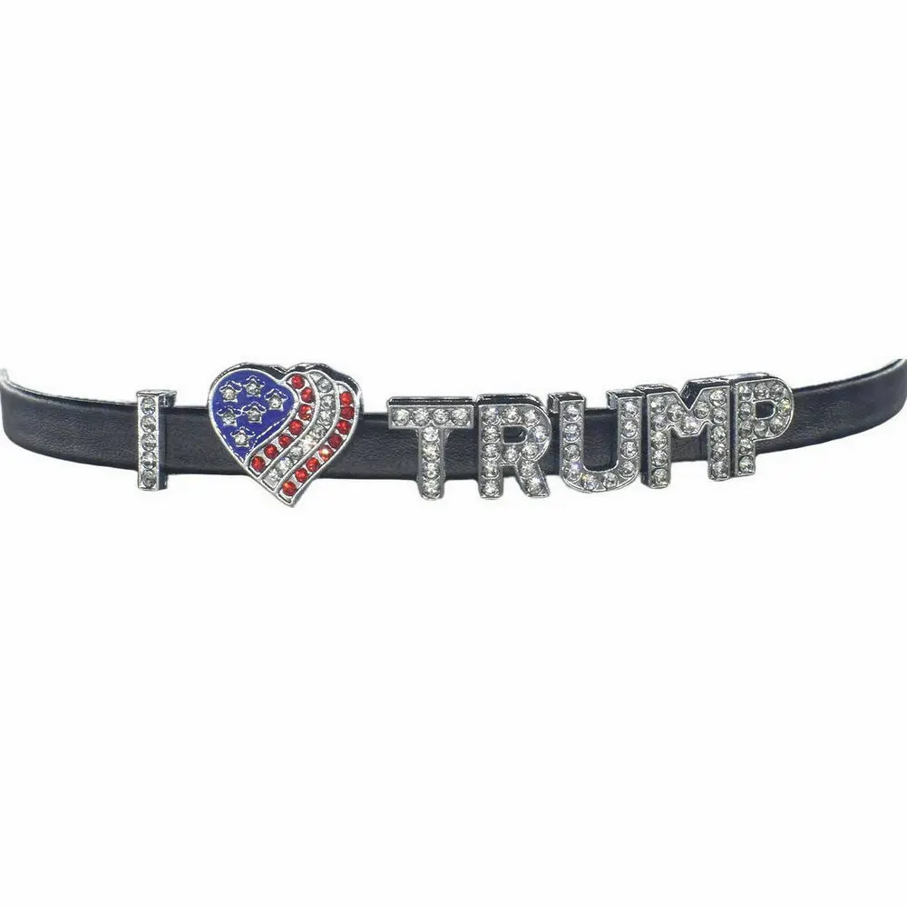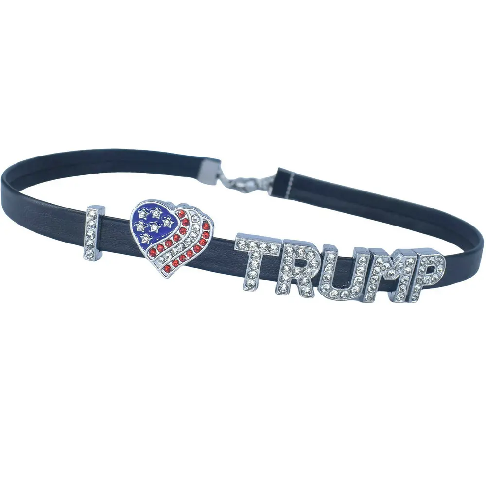 TRUMP Flag Choker Necklace,I Love Trump Heart Necklace,MAGA President 2024 Vote Merchandise USA Flag Collar,Make America Great Again America Republican Heart Rhinestone Outfit,Presidential Campaign Vote Trump Backer Costume PU Leather Accessories Jewelry