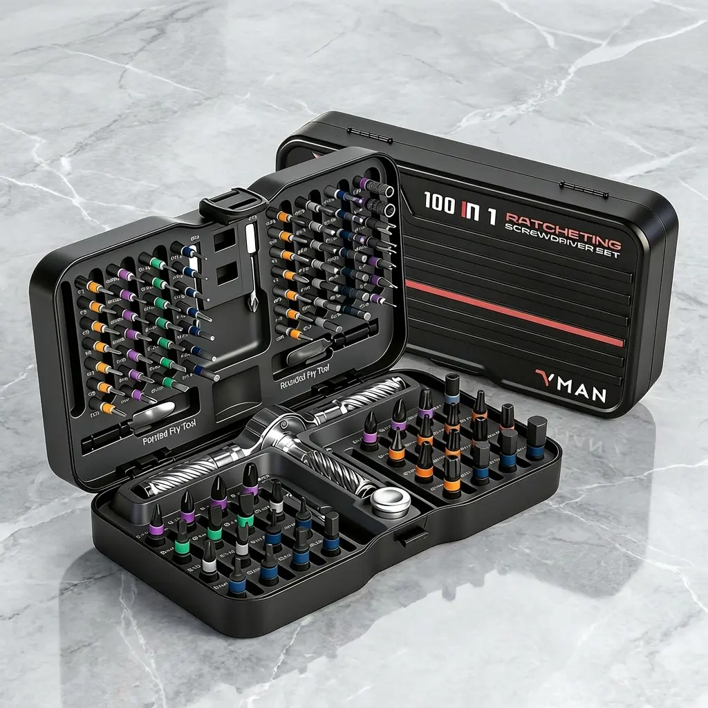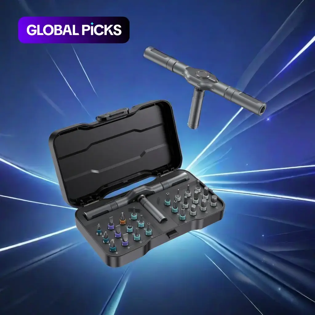This beats the stupid L shaped Allen Wrenches. It comes with multiple tips and and a durable case. The best part is you can take the handle pieces off and make the driver piece longer if needed. The little switch at the top makes it a one handed masterpiece.