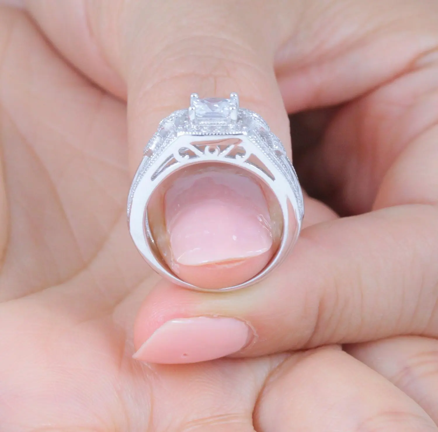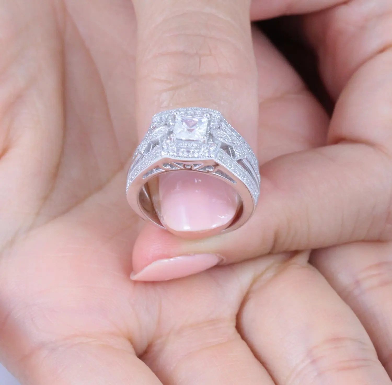 Absolutely gorgeous! I lost so much weight that none of my wedding rings fit me anymore and no where carries size 4! I should have got the 3.5 but even still this 4 is a beautiful fit, not huge and in your face which I adore!