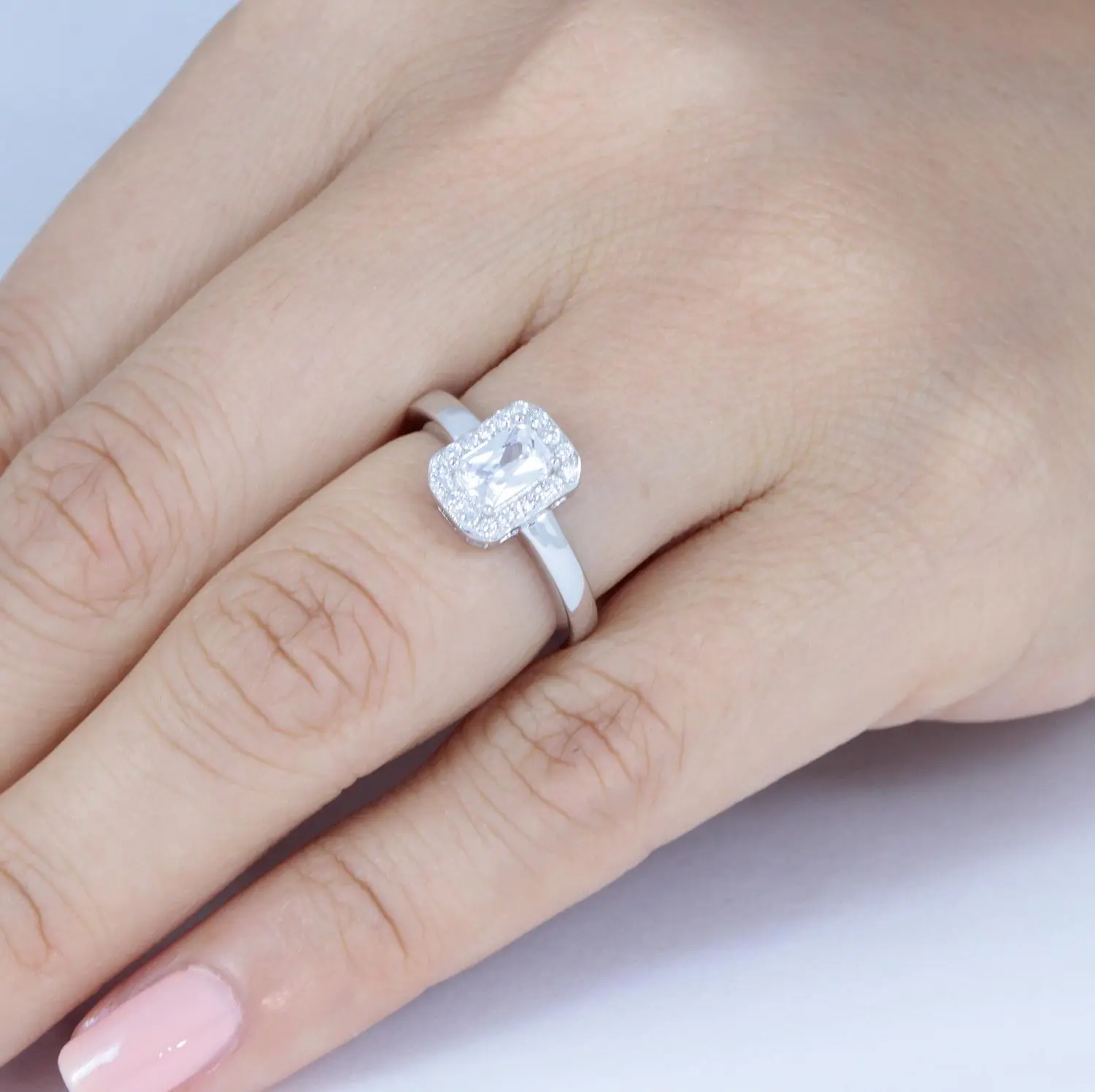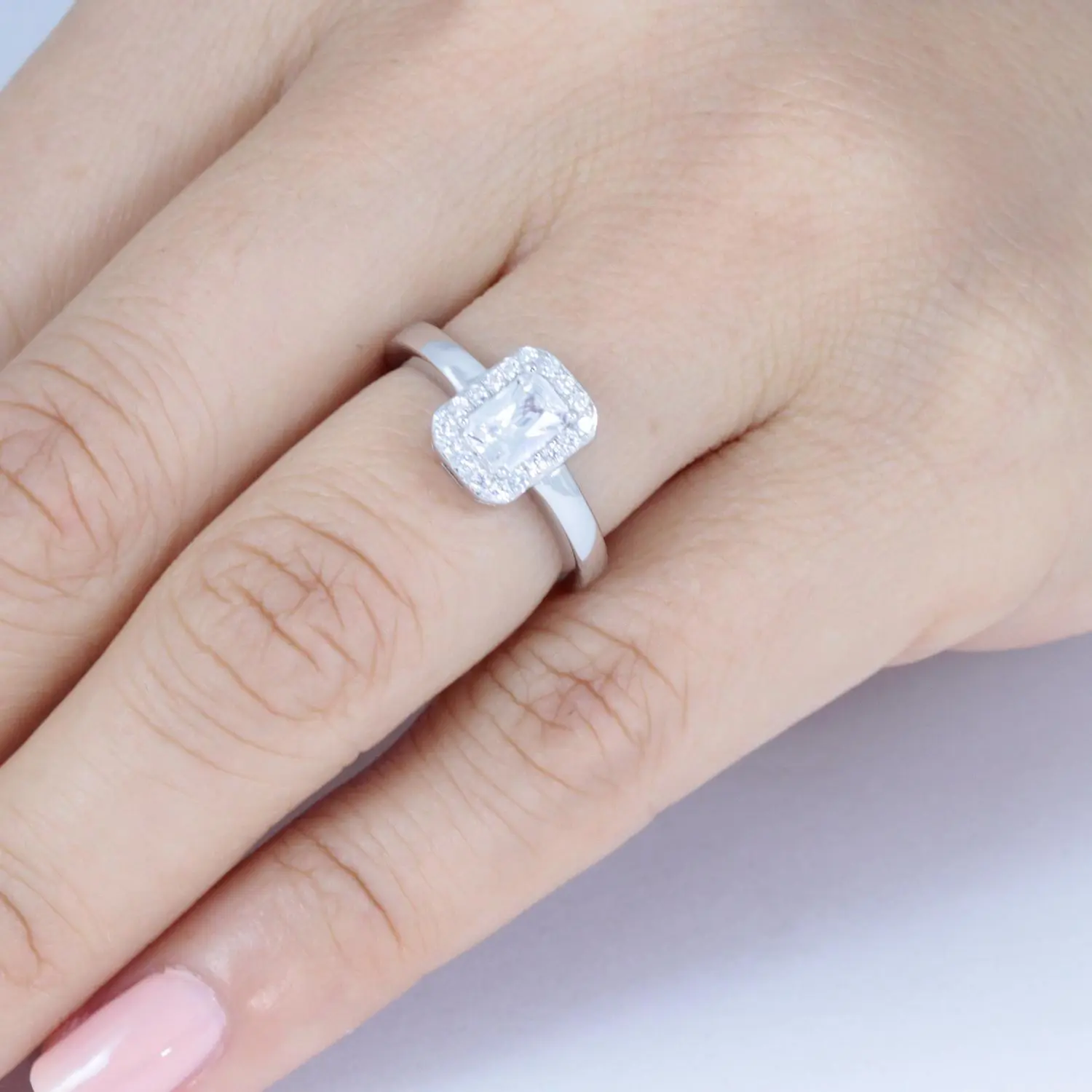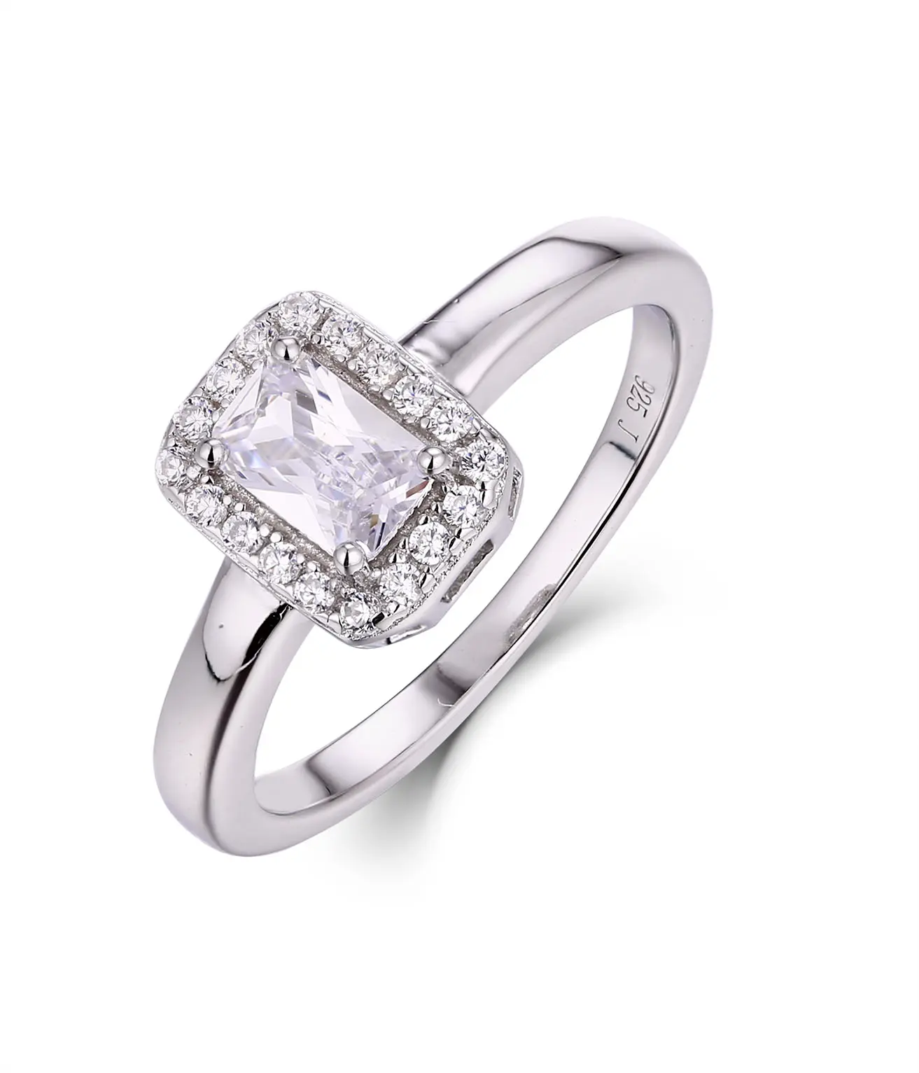 Rectangular Halo 925 Sterling Silver Radiant Cut CZ Engagement Ring Wedding Bridal Travel Ring Size 3-14 S3088