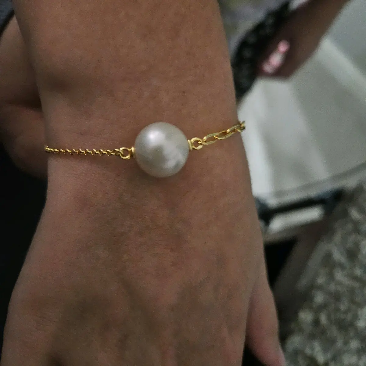 Beautiful Golden Sterling Silver Braclet With Luna Fresh Water Pearl.