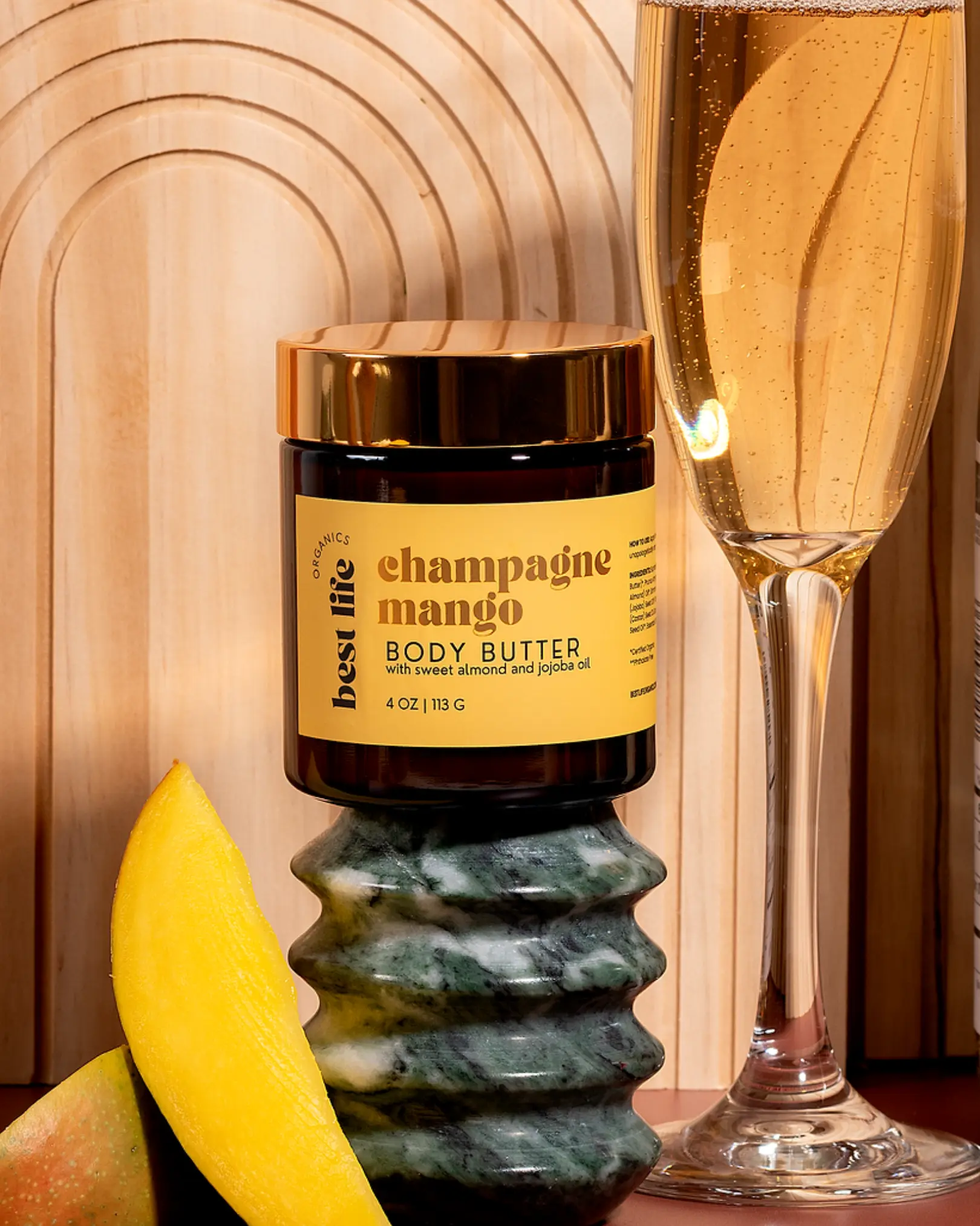 I am a big fan of Best Life Organics. I like that they are clean, cruelty-free products that smell and feel amazing on my skin. The champagne mango body butter is one of the best body butters I have ever used. The texture is silky smooth - much smoother than others I have tried - and it smells fresh. I just purchased several others to share with friends (peach + ginger, strawberry + citrus, amber + oak moss, and more champagne mango).