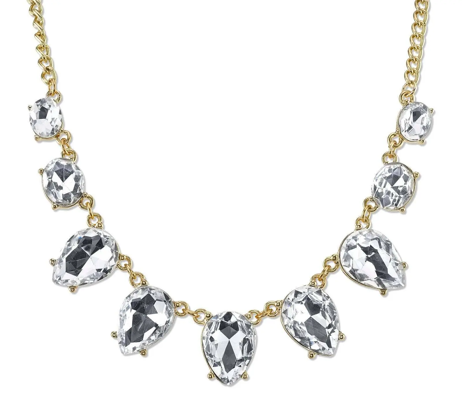Radiant and refined, this statement making necklace infuses just the right amount of sparkle. Crafted in gold tone metal with multi faceted glass stones.This gorgeous adds subtle sparkle to any outfit. It's perfect for all seasons and makes an affordable gift for her.