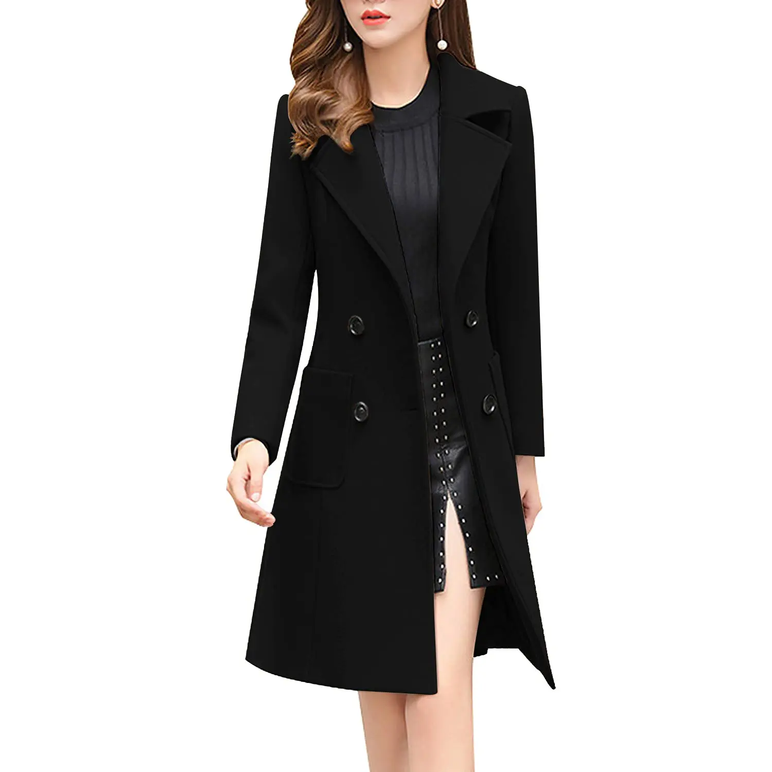 ·Mid-long wool blend pea coat with 2 hand pockets at side, made of high quality and windproof and thermal wool blend fabric; Perfect to match with your turtle neck sweater, jeans, dress, hoodie, heels, sneakers, etc