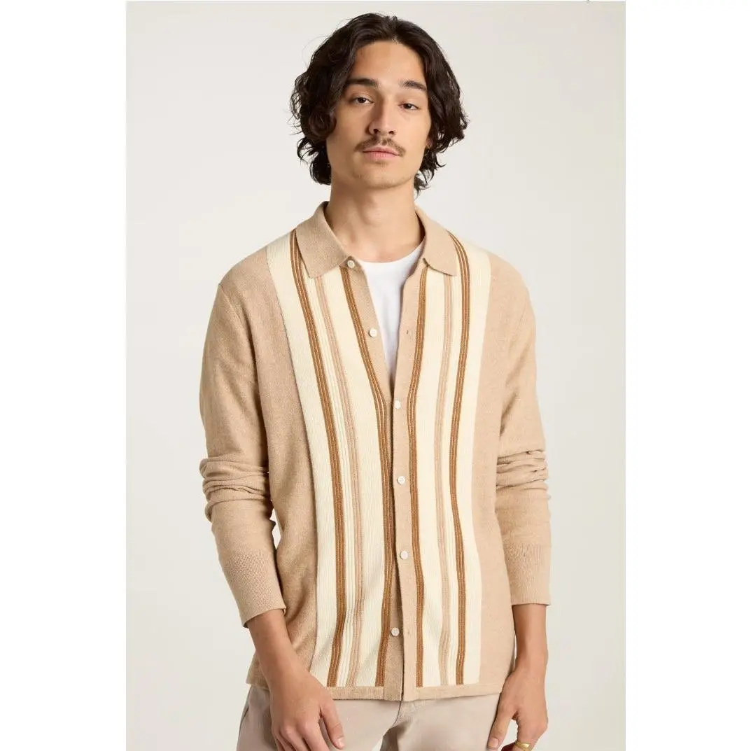 Men's sweater button up with collar - Camel Cashmere Stripe *Final Sale*