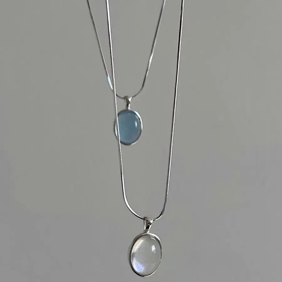 ·Exquisite Design: This necklace features natural aquamarine and moonstone stones, creating a harmonious blend of cool blue hues and ethereal shimmer, making it a truly unique accessory.